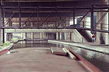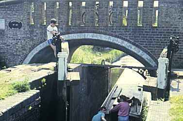 ![]() Going down the narrow staircase locks through the Stourport Basins. Staffs and Worcs Canal. |