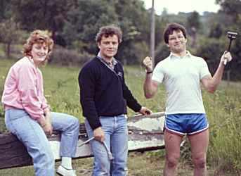 ![]() Sue and the two John's. Tardebigge Flight. Worcester and Birmingham Canal. |