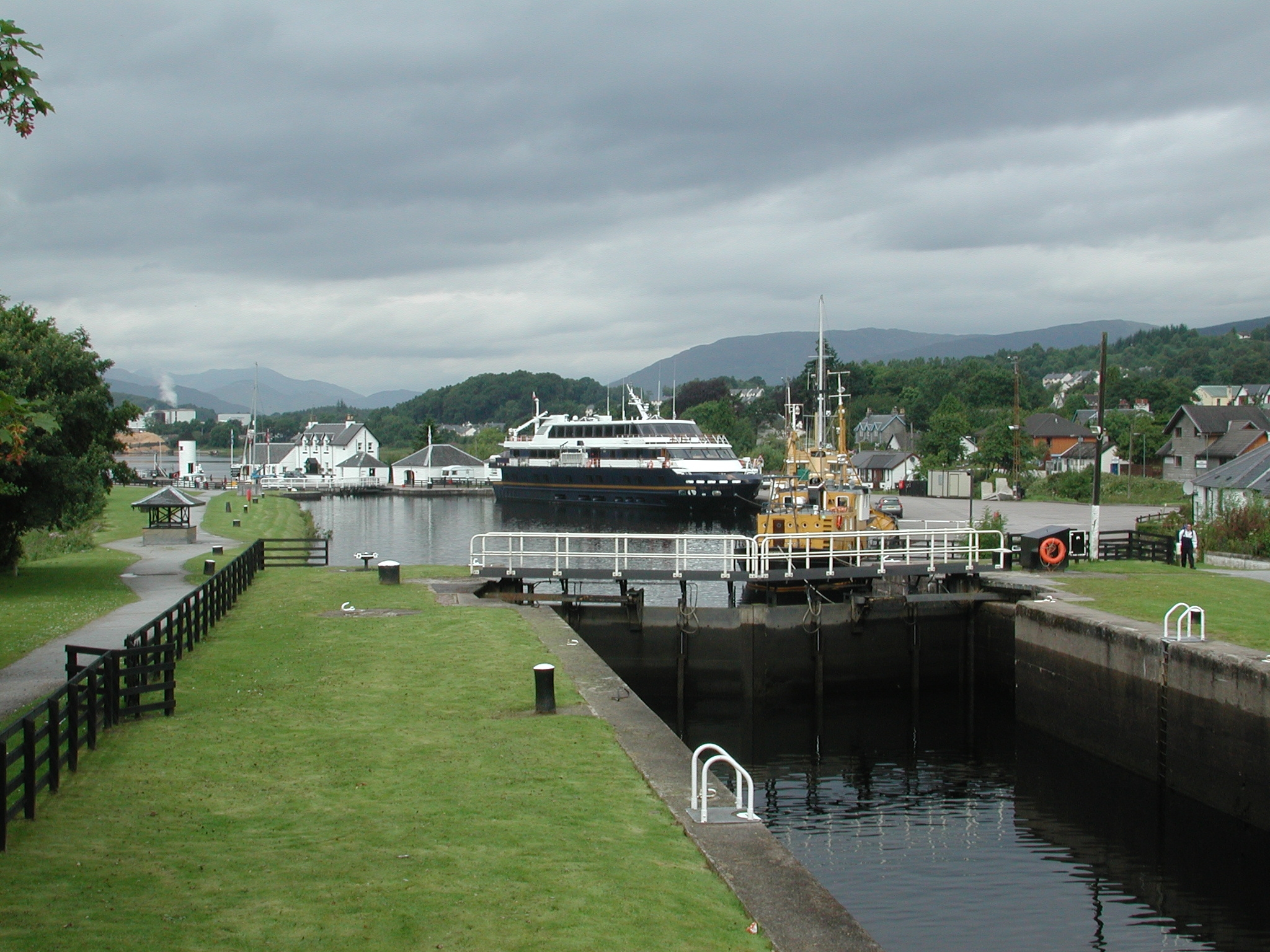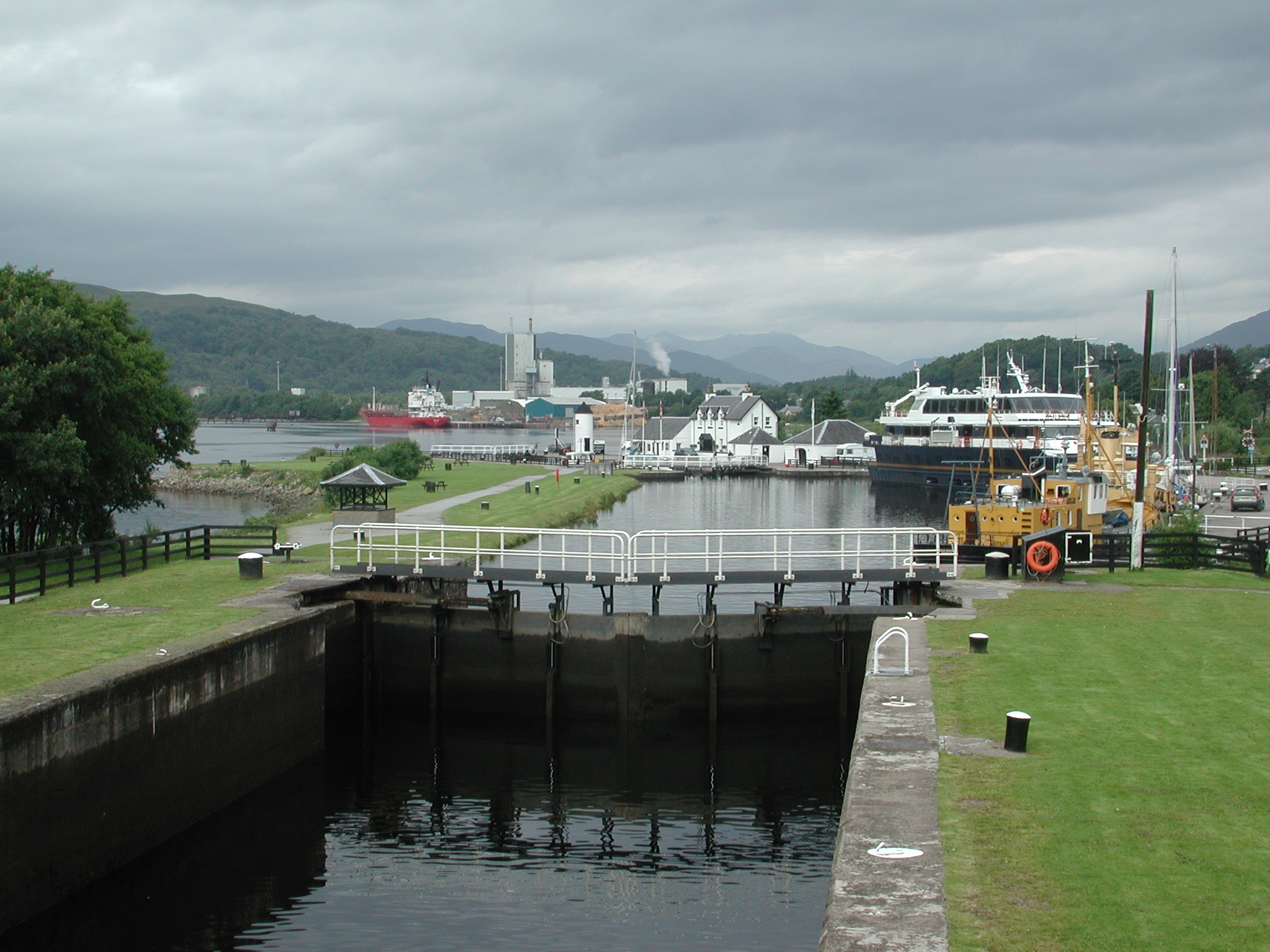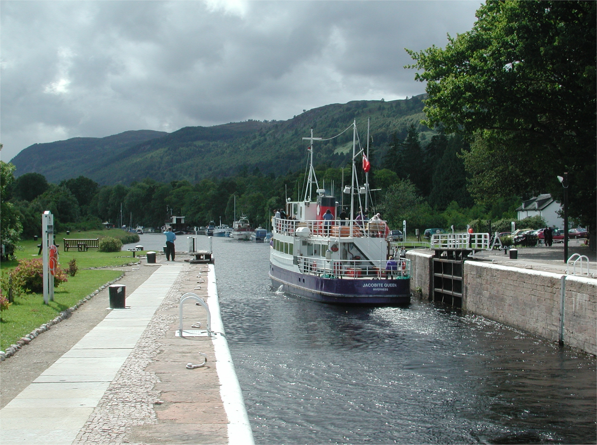 Corpach Double Lock. Looking down at MV Lord Of The Glen moored in Corpach