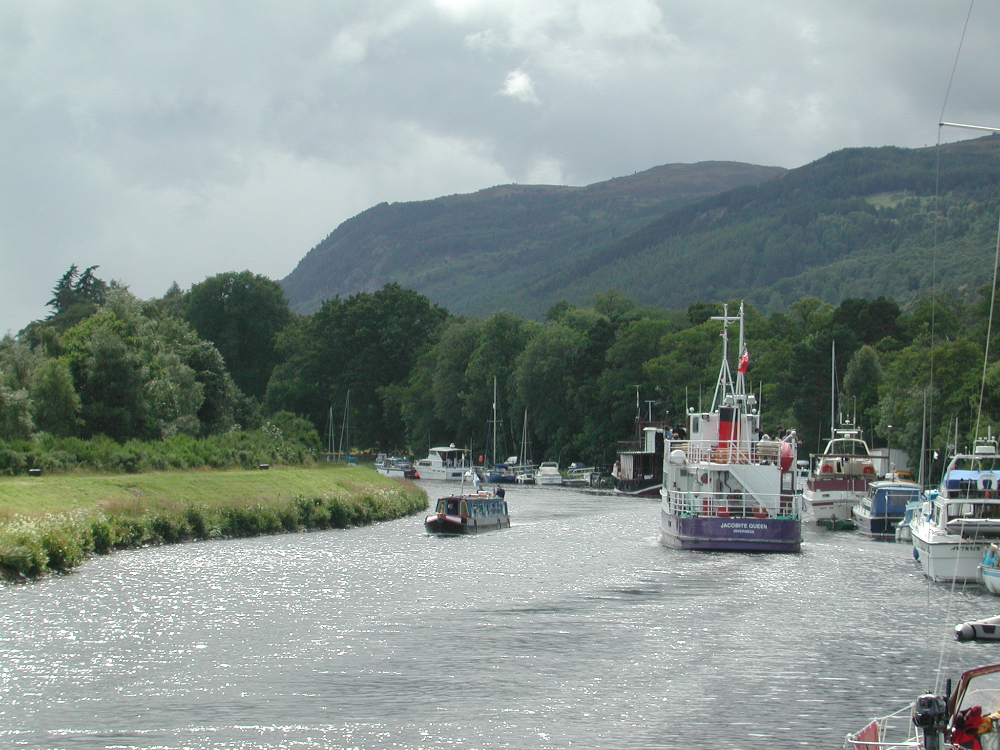 Ocean Princess passes Jacobite Queen above Dochgarroch Lock.