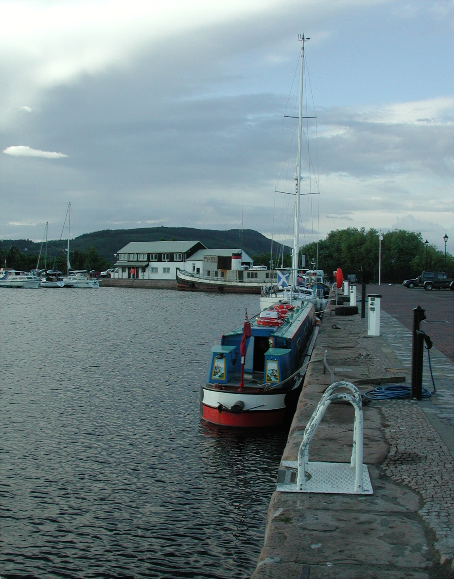 For the ultimate English narrowboat journey, Neil and Martin Clark started the ultimate car-shuffle and arrived in Inverness at 11:45, after some terrible rain over the Lake District and the other side of Glasgow. The weather in Inverness was not that bad, just showers. After checking into B&B at Lochend and a quick fish and chips in Drumnadrochit and a few mobile conversations Martin and Neil spotted OP by Urquhart and shadowed it with camcorder and digi camera's until meeting up with the crew at Dochgarroch Lock. After a pump-out and diesel fill up at Caley Cruisers in Inverness, OP made Muirtown Staircase and moored up in Muirtown Basin, Inverness at 18:00. Tomorrow Martin takes the Arlidge Polo back to Manchester after dropping crew member Tom at a railway station, a bit more down south!...probably Preston.
