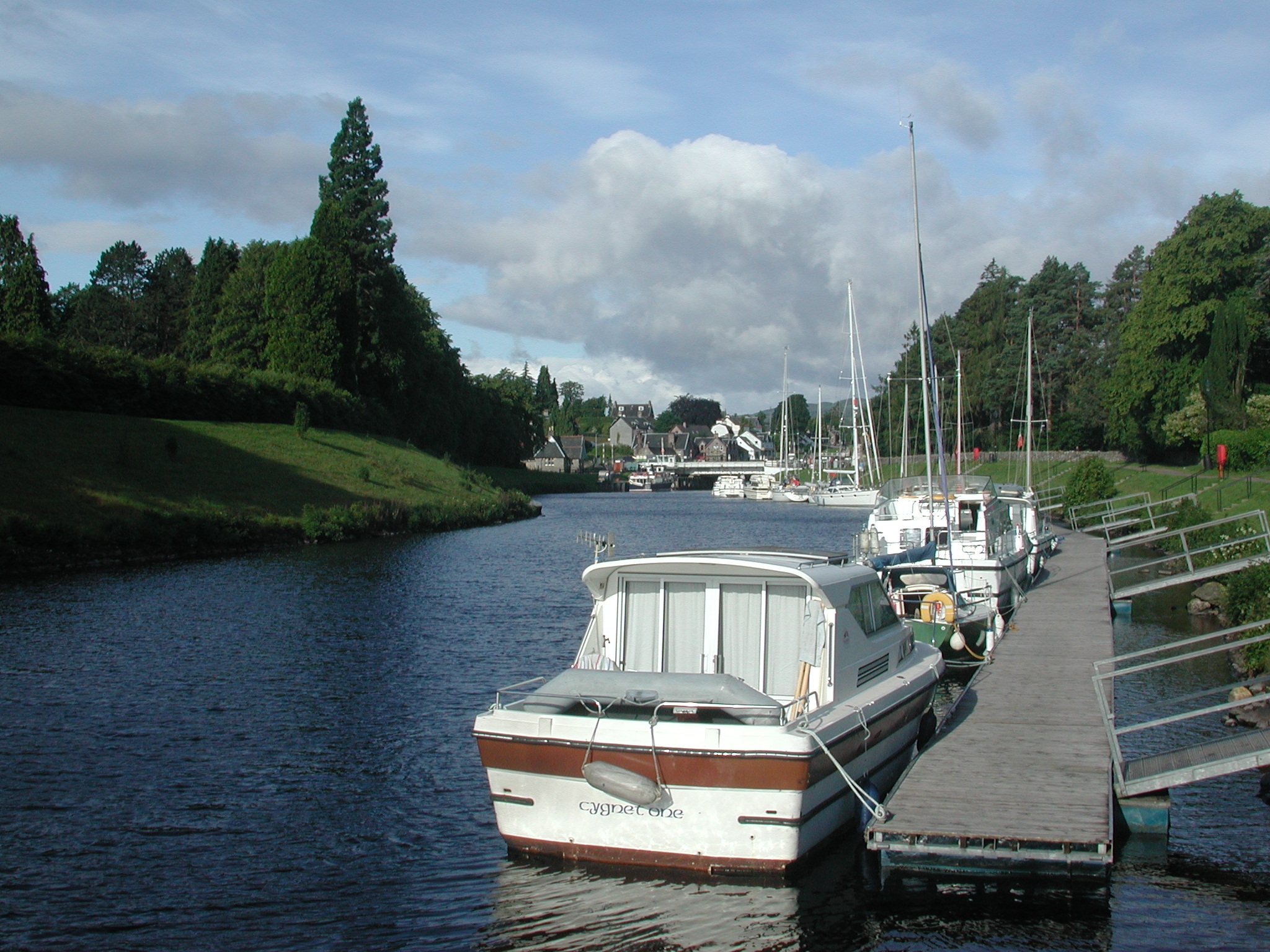 Fort Augustus, moorings, lock flight in the distance. Caley Canal.