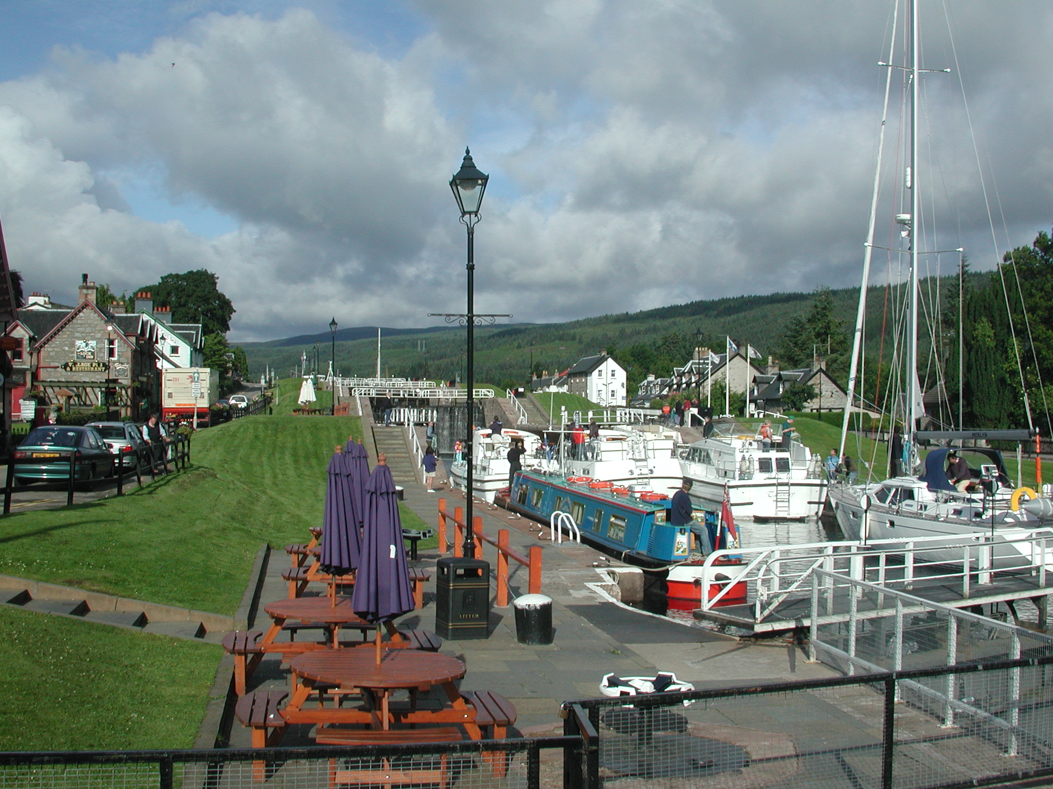 Fort Augustus swingbridge and the start of the staircase locks.