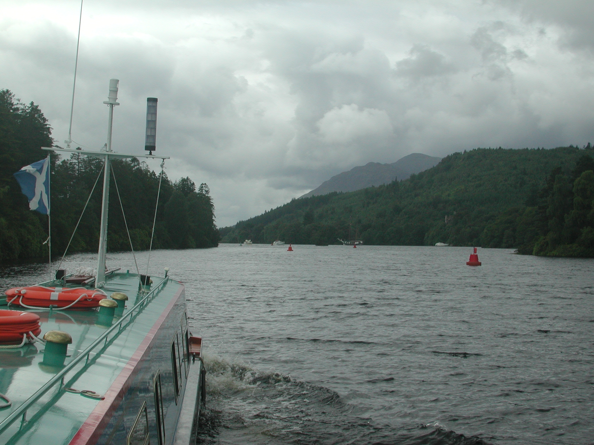 both are in the loch) flying up into the air beside the boat. After the bridge