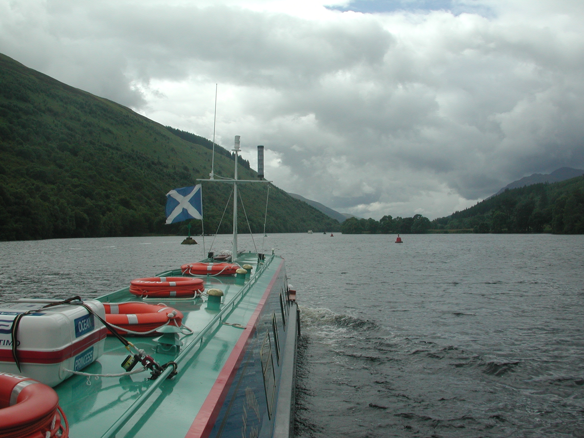 Looking down Loch Ness. Ocean Princess is approaching the narrow buoyed channel