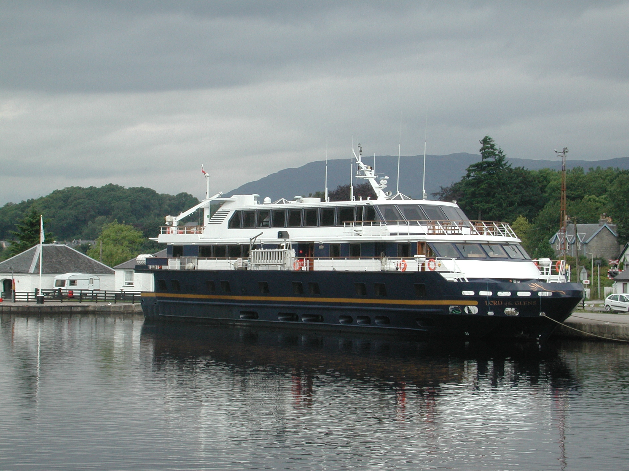Ocean Princess at rest at The Clansman Hotel port. Loch Ness.