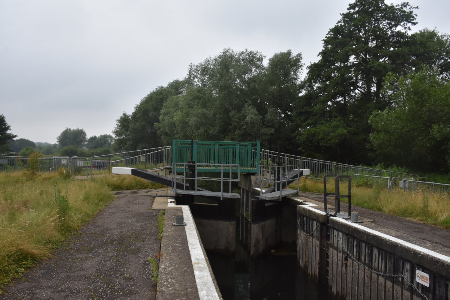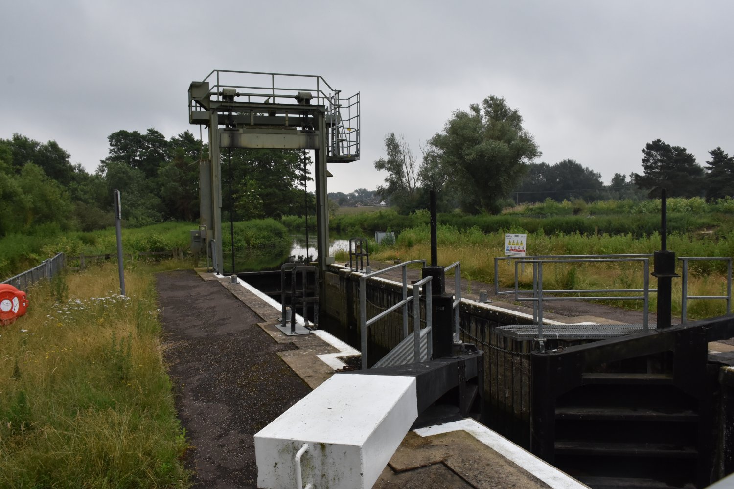 NB Earnest at 58ft 6ins long will not fit this 48ft lock. VERY bad silting below lock (2021) and opposite Visitor mooring, safest to wind in weir stream.