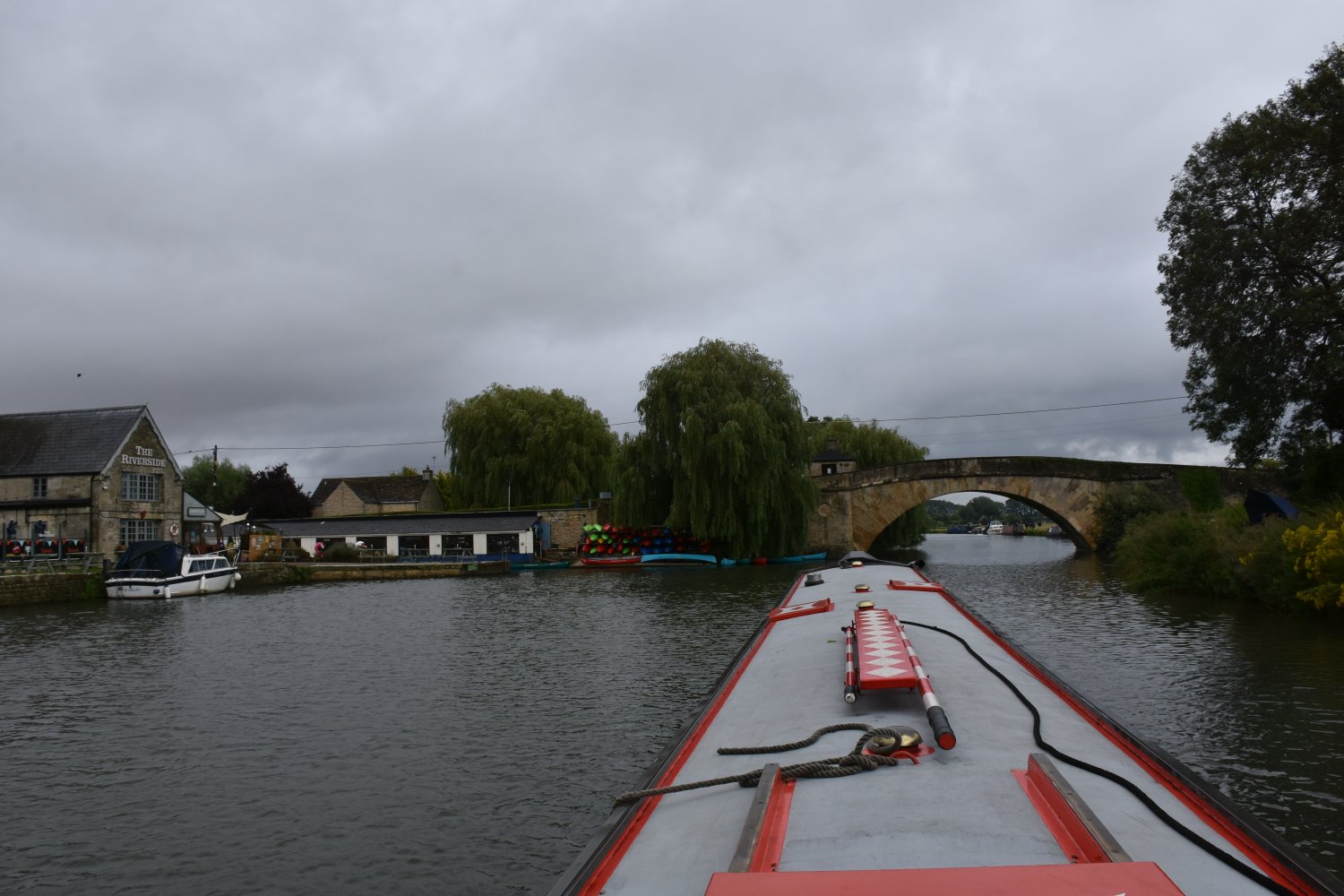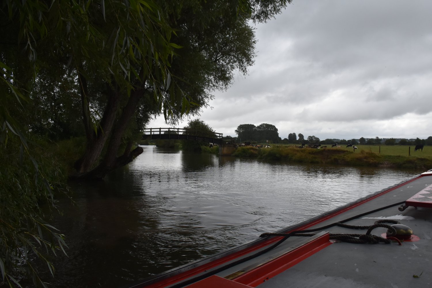 Contrary to local advice, you can still wind a 58ft 6ins narrowboat beyond the foot bridge. We stuck stern up the shallow River Coln, until we stopped, bow came round easily