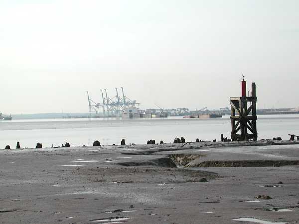 ![]() Looking across at Grain Tower, from Queenborough. Southend is beyond. The pier is obscured by tower! |