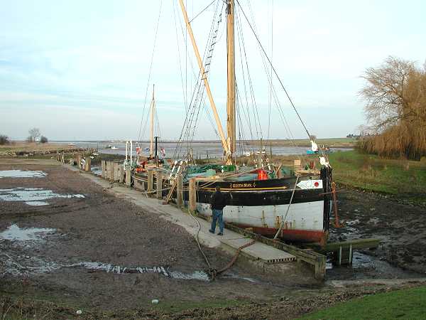 ![]() Thames Barge - Edith May at Lower Halstow Wharf. South bank of Medway Estuary. |