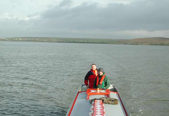 upstream at quite a speed, the first time that Ian had to steer for bow wave and