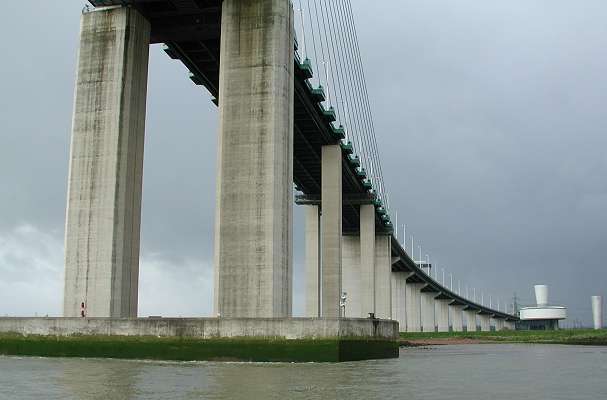 ![]() QE2 Bridge. Vertical trumpets are vents for Dartford Tunnel. |