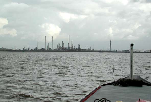 London. A small fishing boat raced us for the smallish gap between Grain Edge