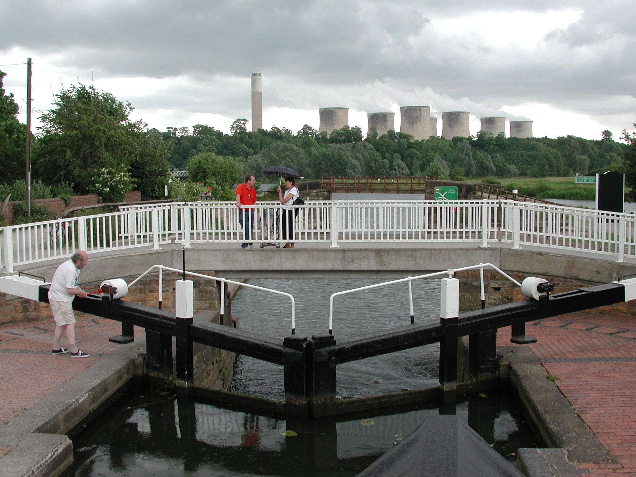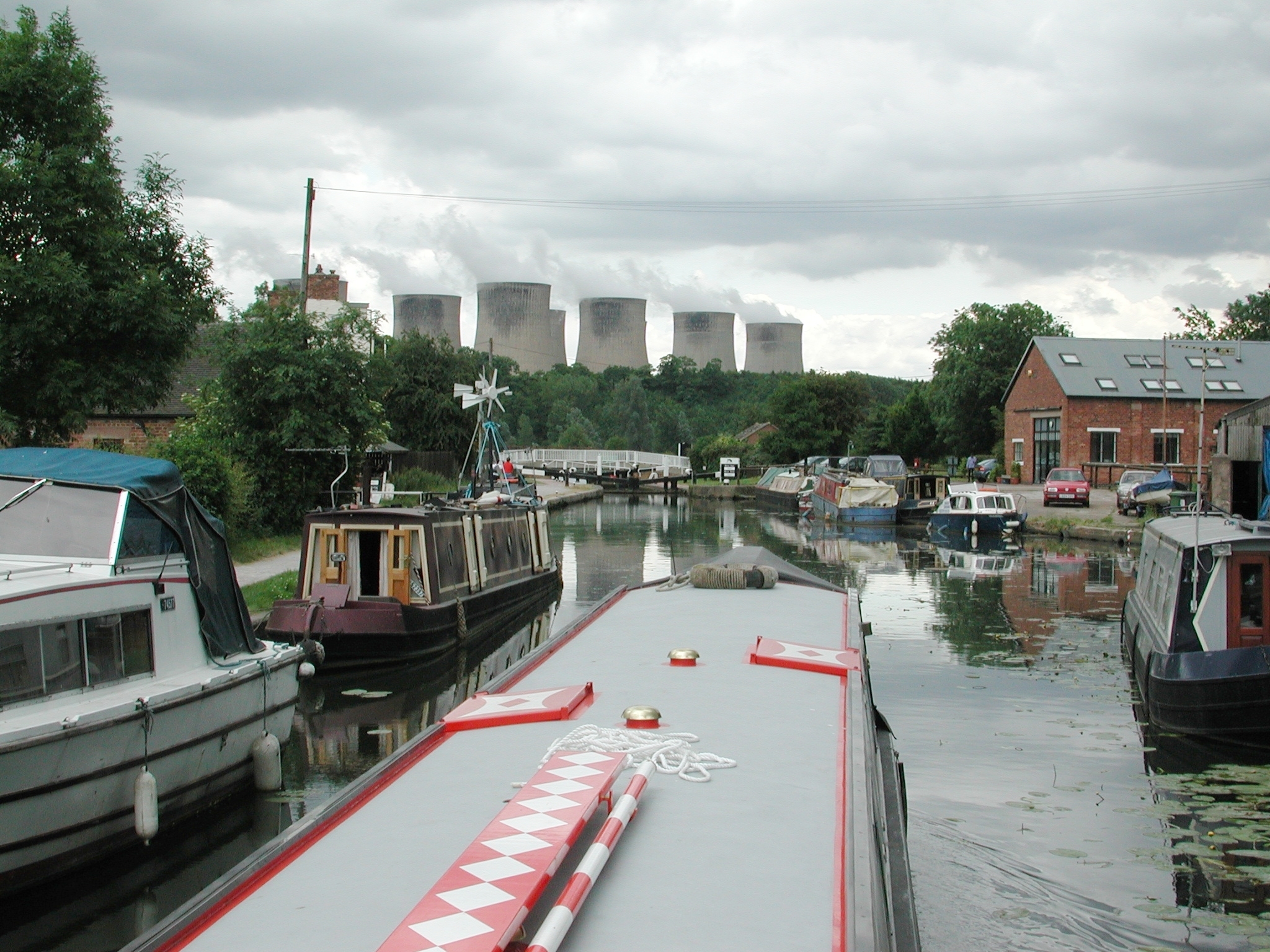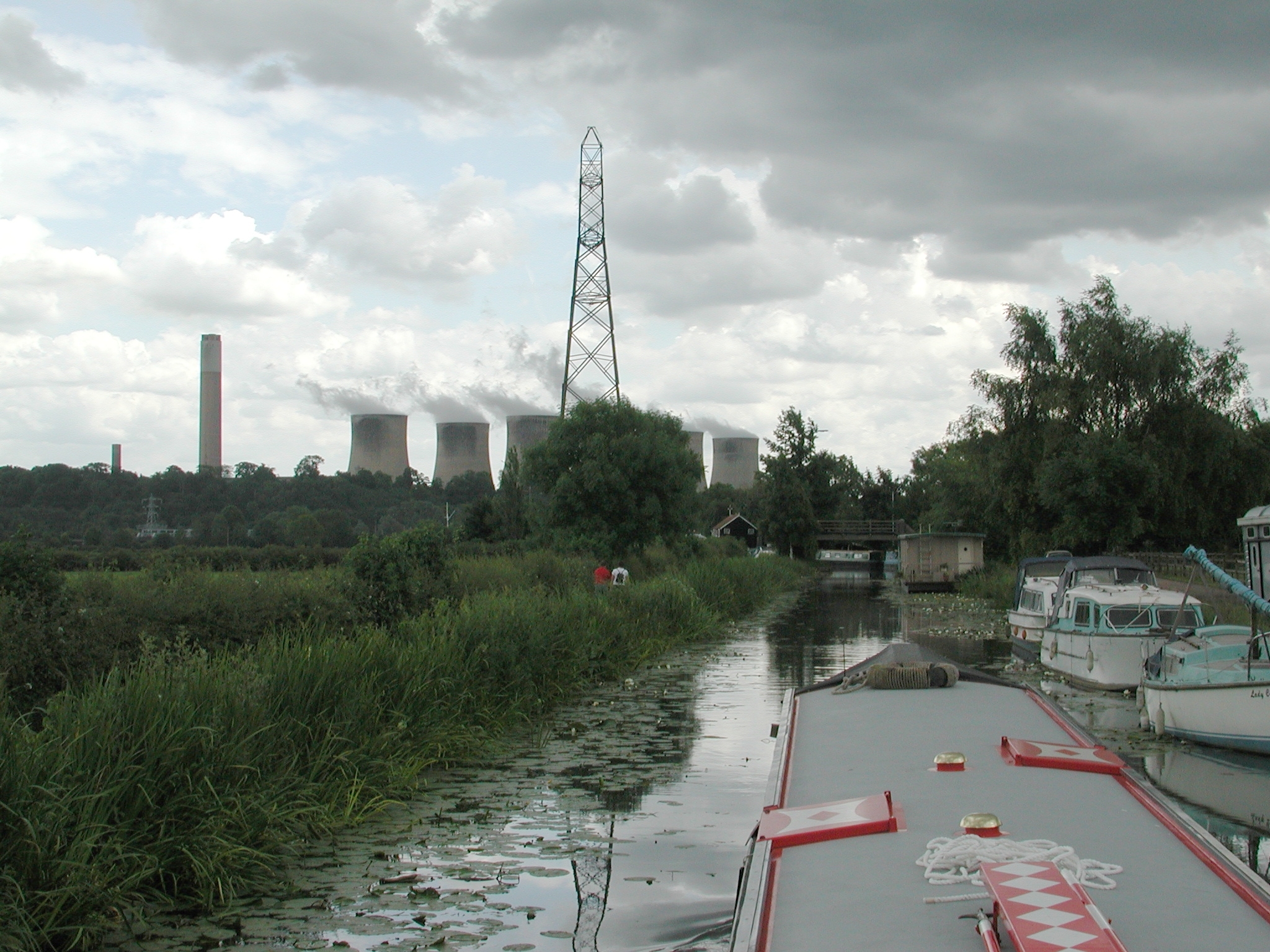 Narrow Bridge and moorings just before Trent Lock. Ratcliffe On Soar power station