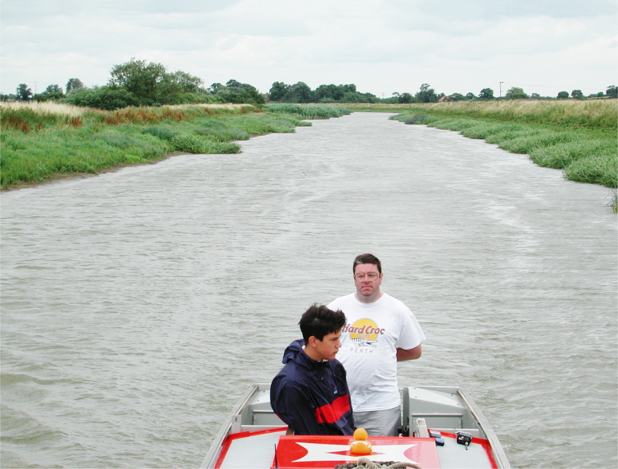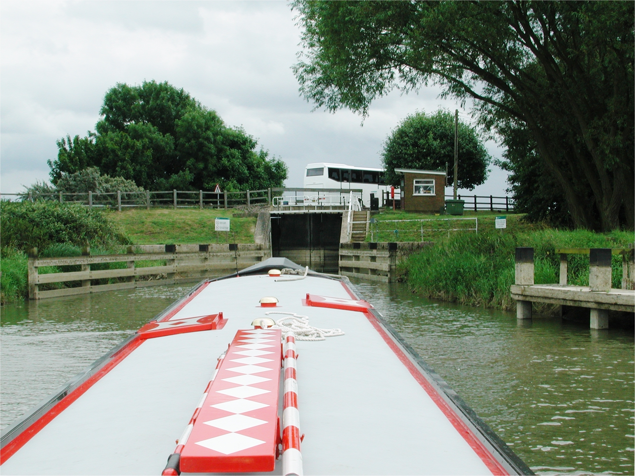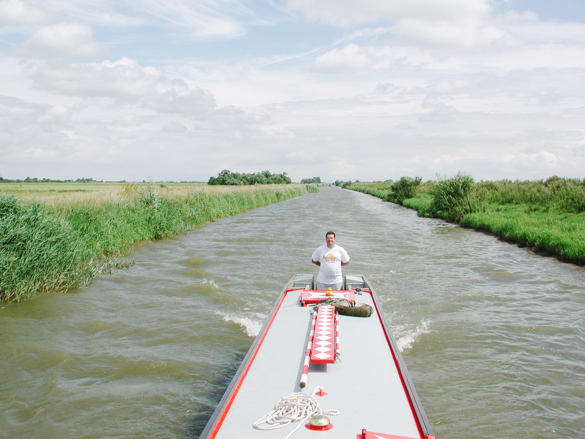 Steaming up on the flood, passed Denver Sluice. Tidal River Great Ouse.