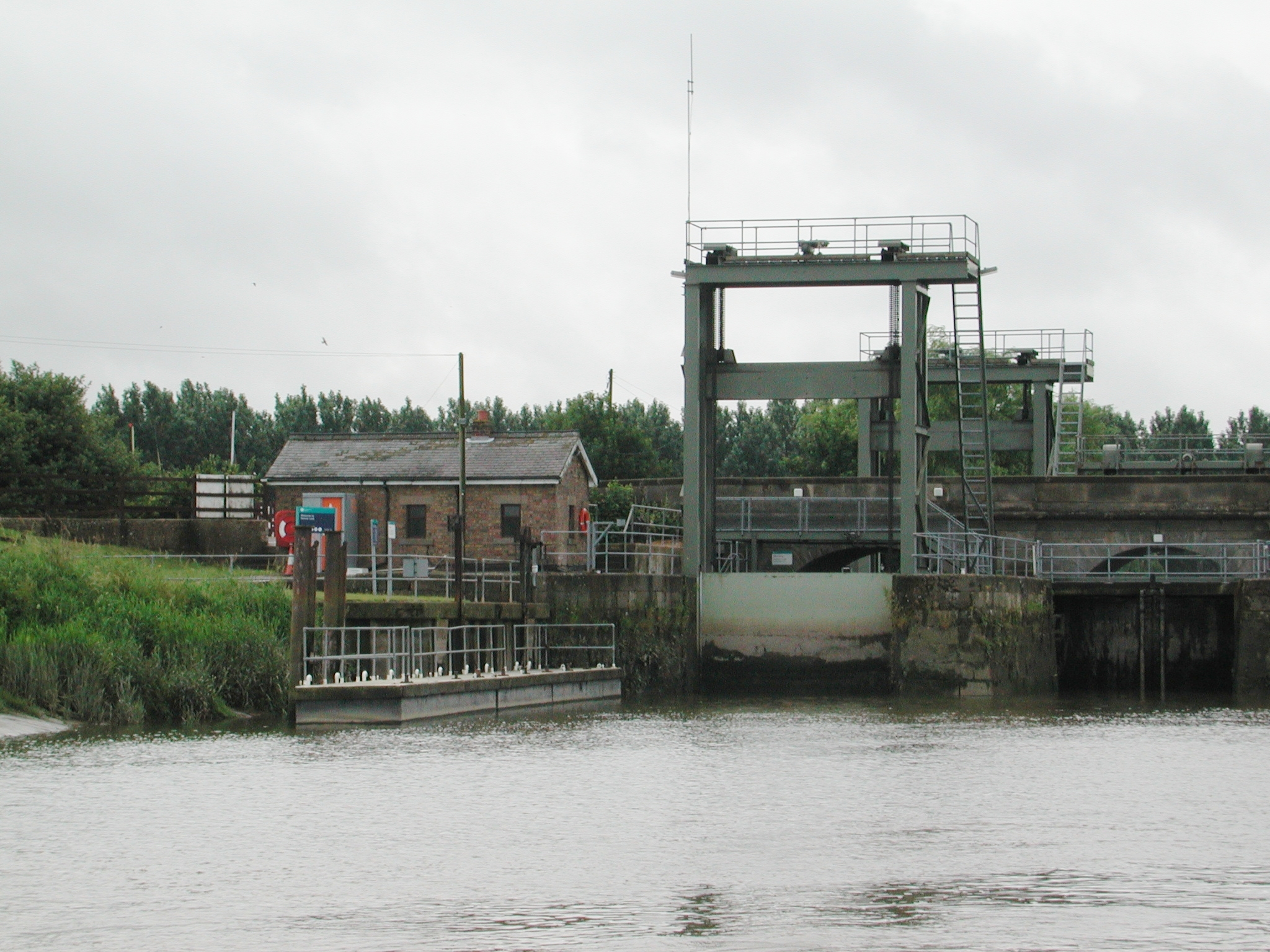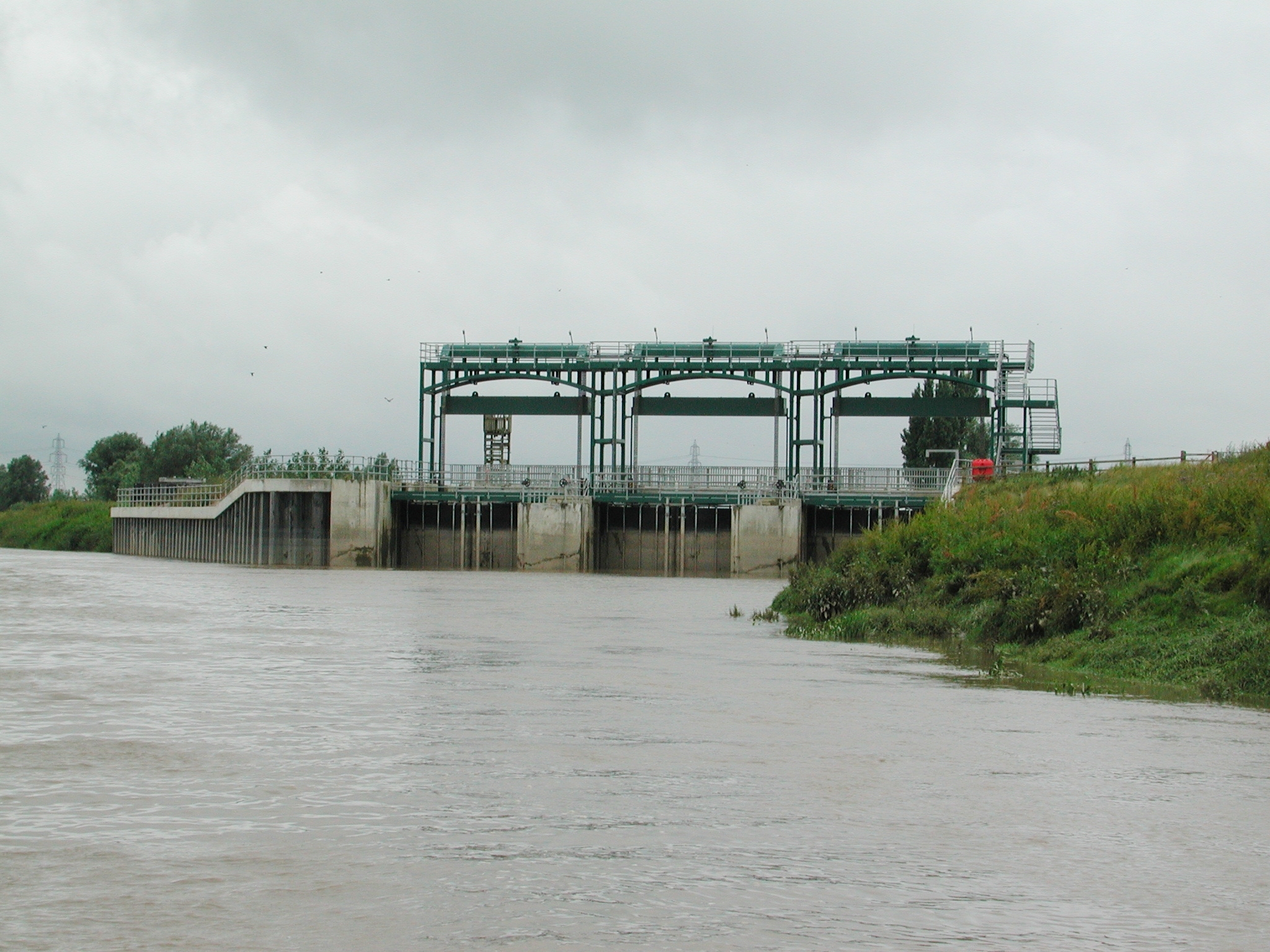 Looking up at Denver Sluice. Tidal River Great Ouse.