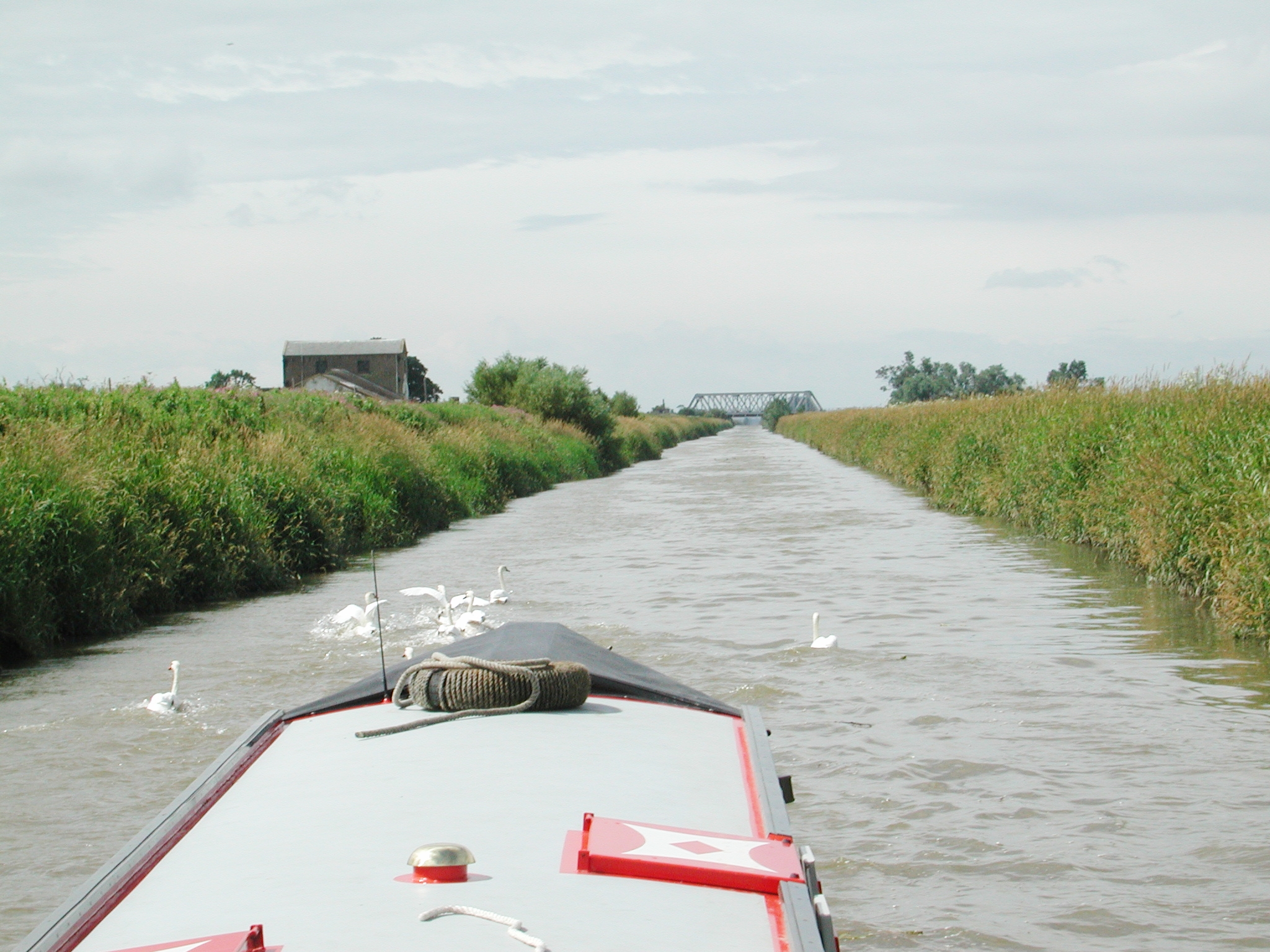 not used to boats! Primrose Farm pumping station and Oxlode Railway Bridge in