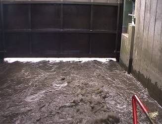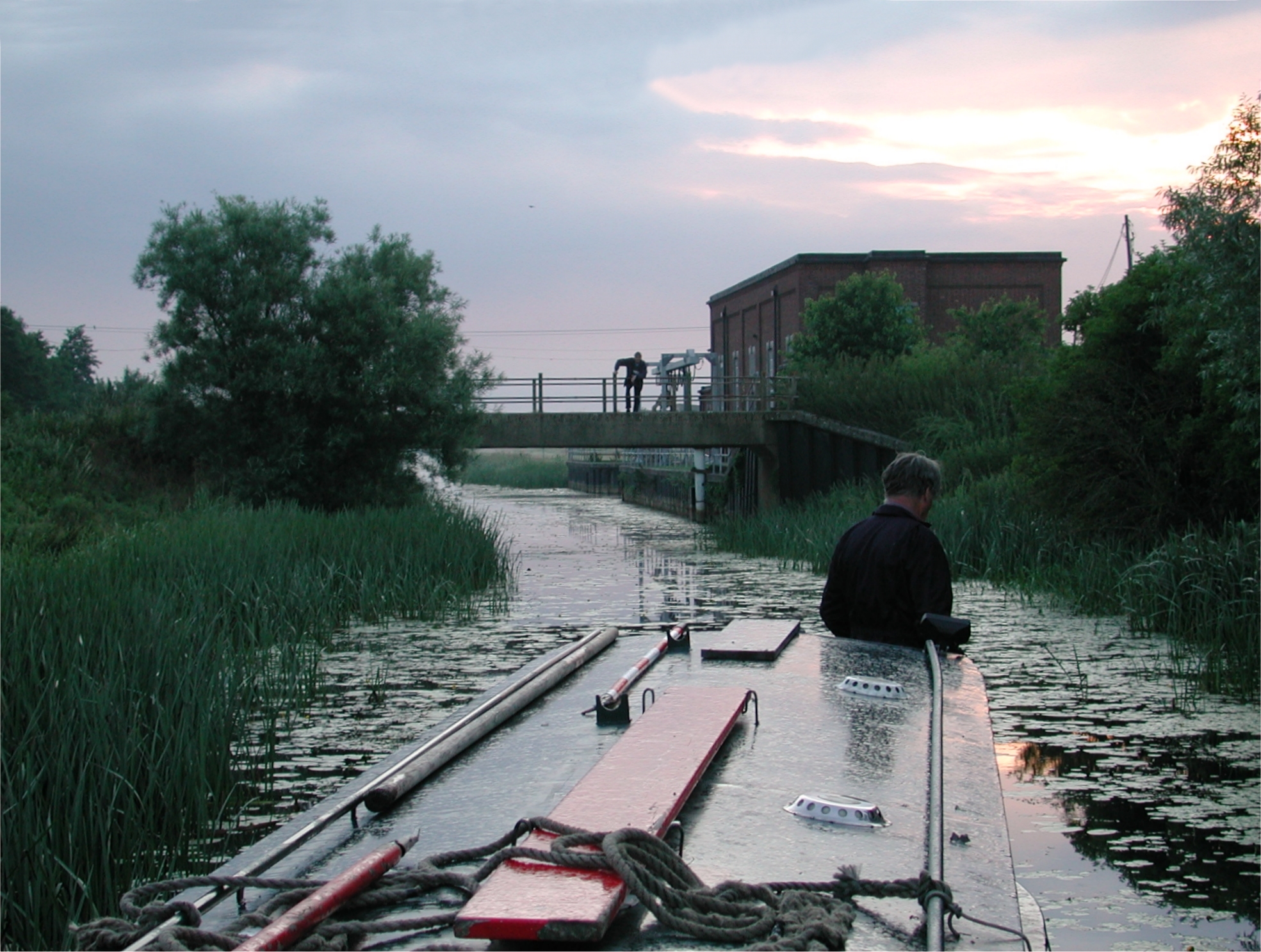a rush of the flood tide through the small cut out into the tidal Great Ouse,