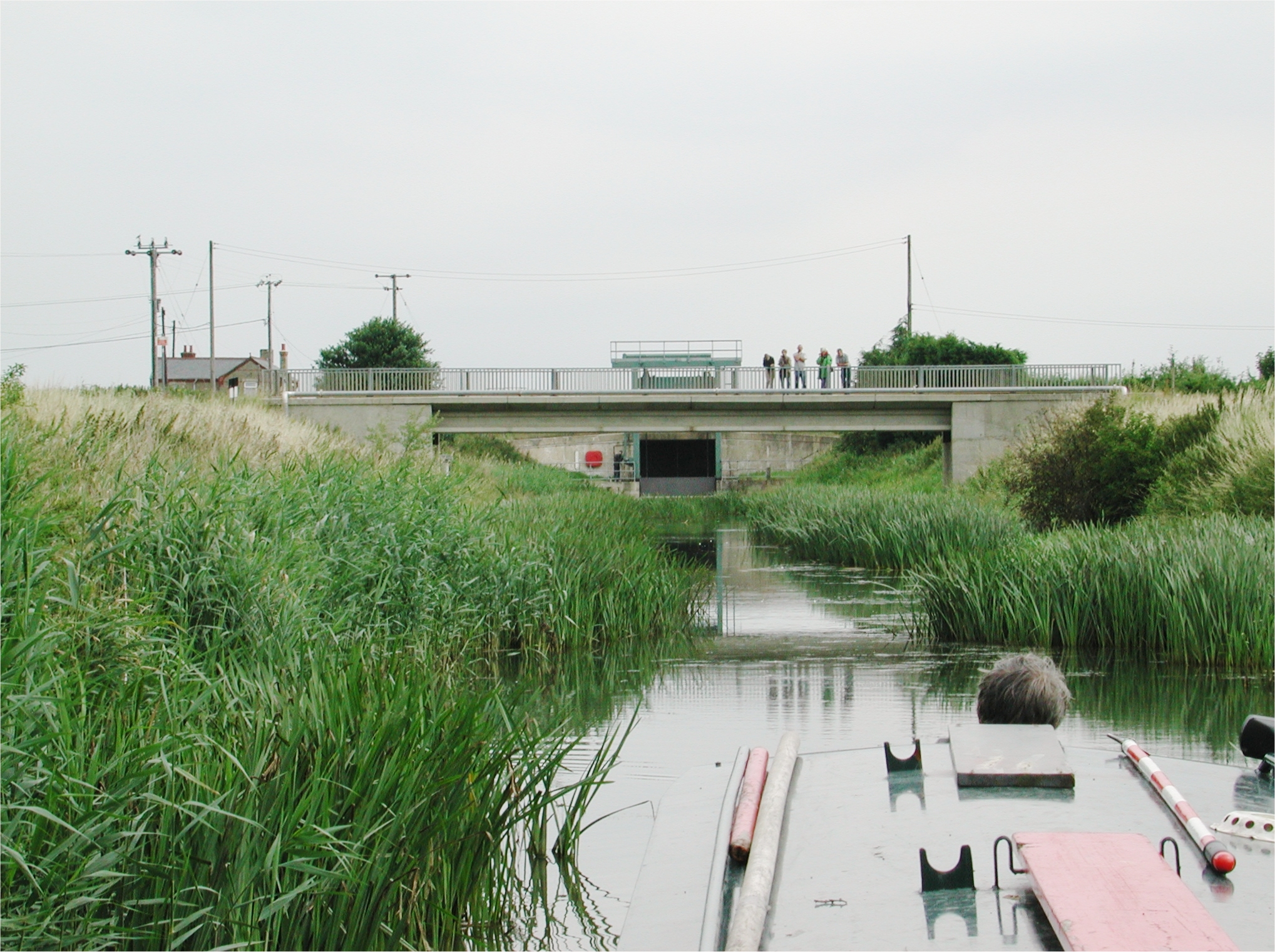 Welney and bridge. Sluice gate visible beyond. Old Bedford River.