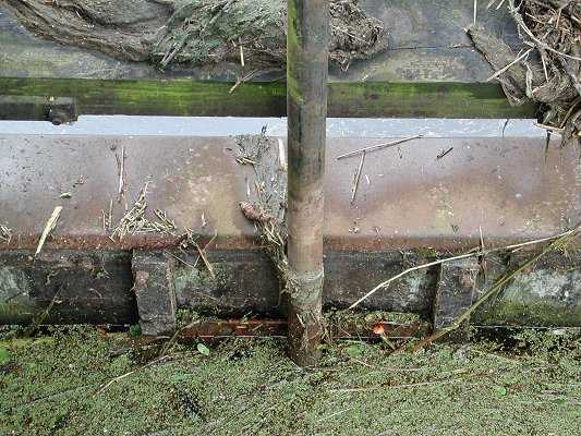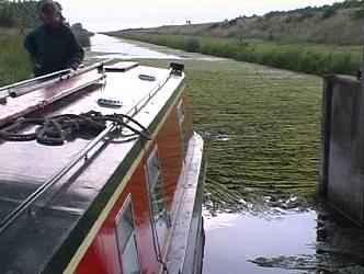 We break free of the weeded up Welney Sluice gate. Old Bedford River.
