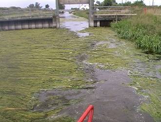 Looking back at the pumping station shed after which the blanket weed disappeared.