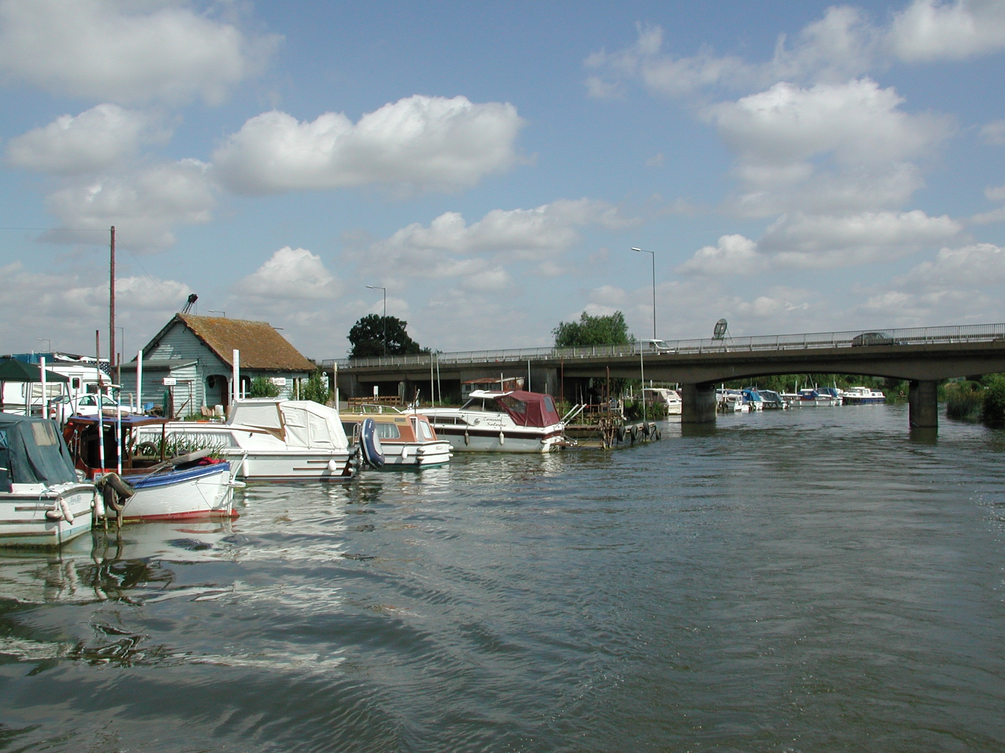 Tempsford. A1 bridges and Kelpie Boatyard. River Great Ouse.