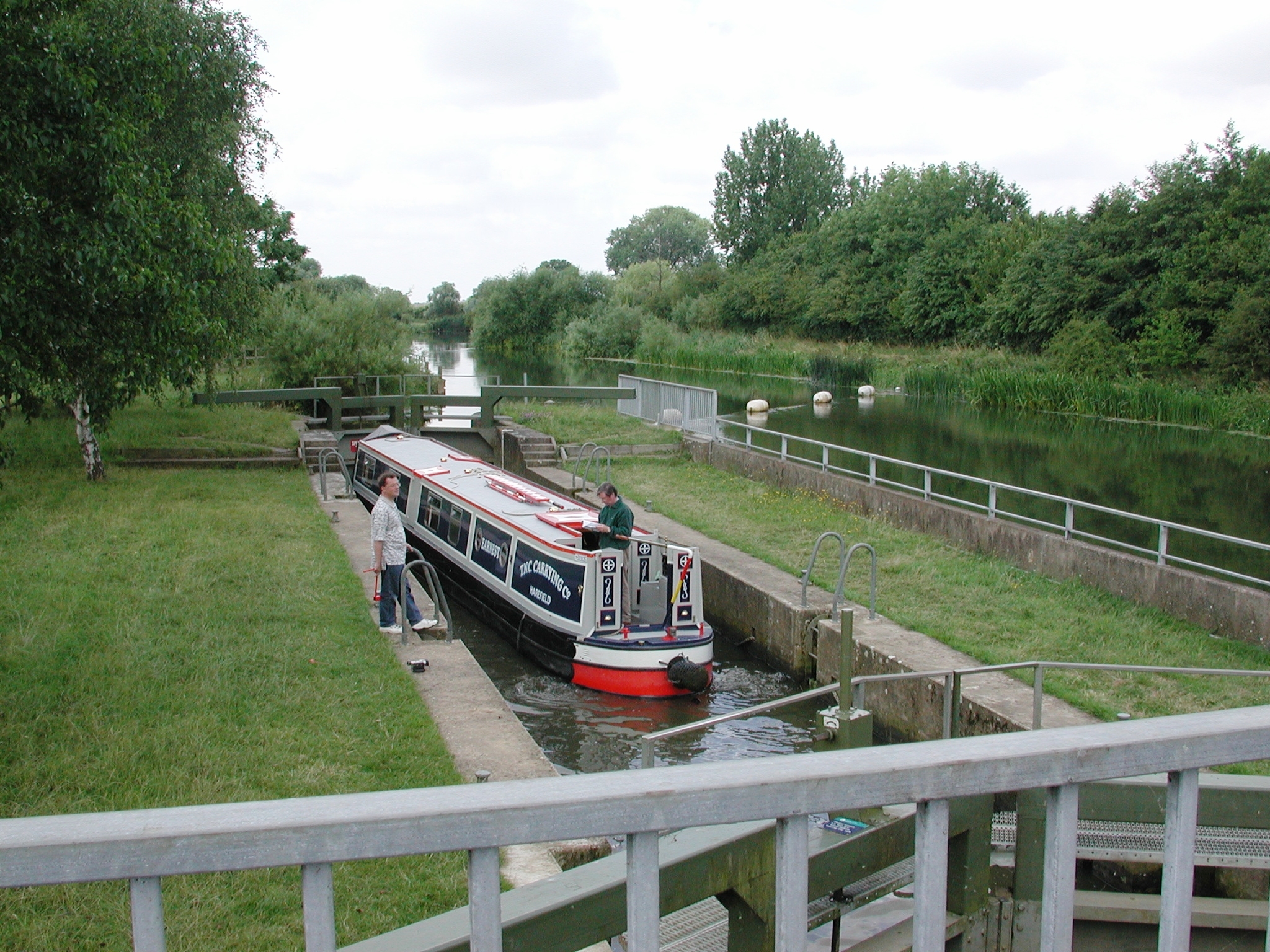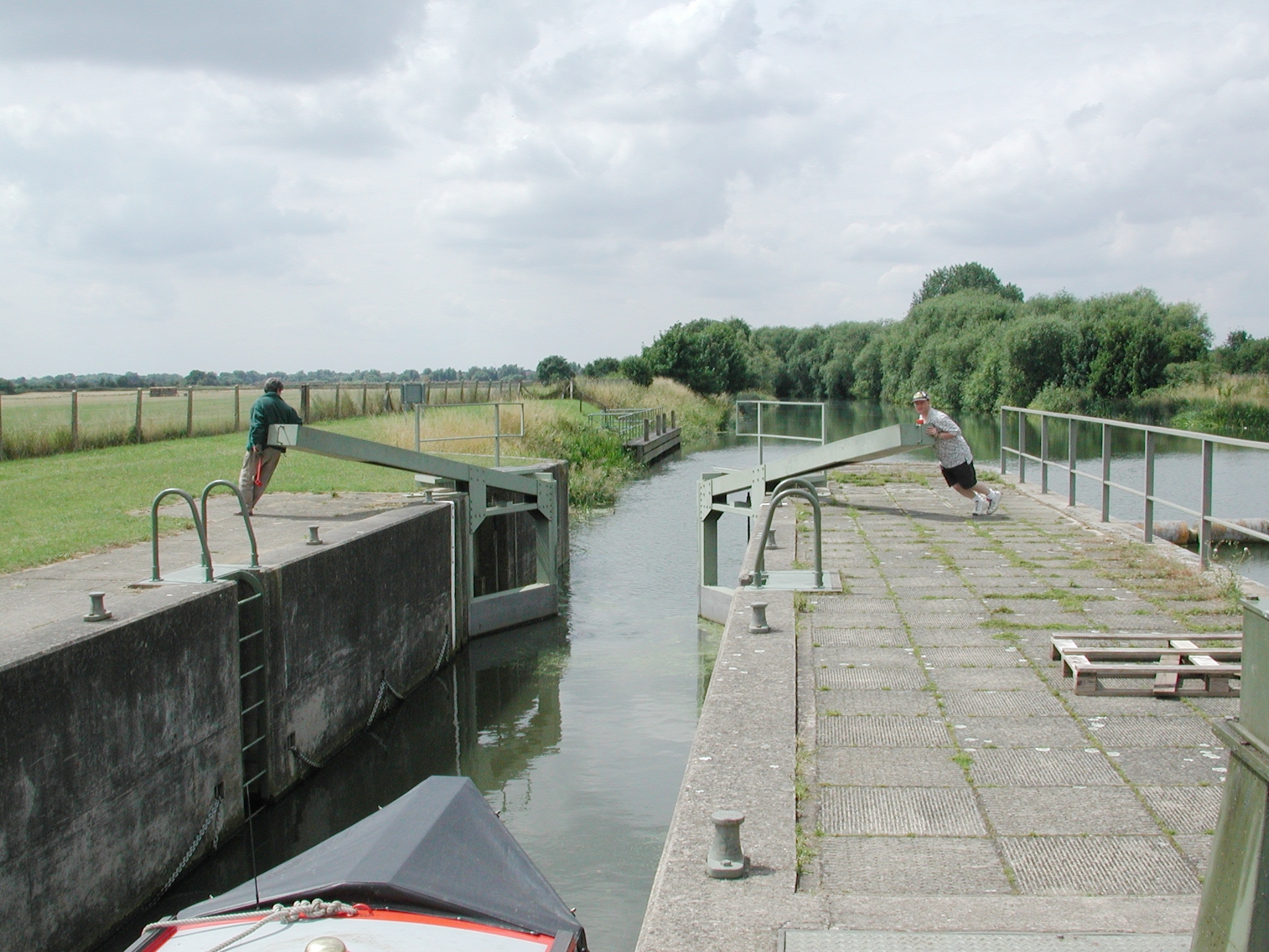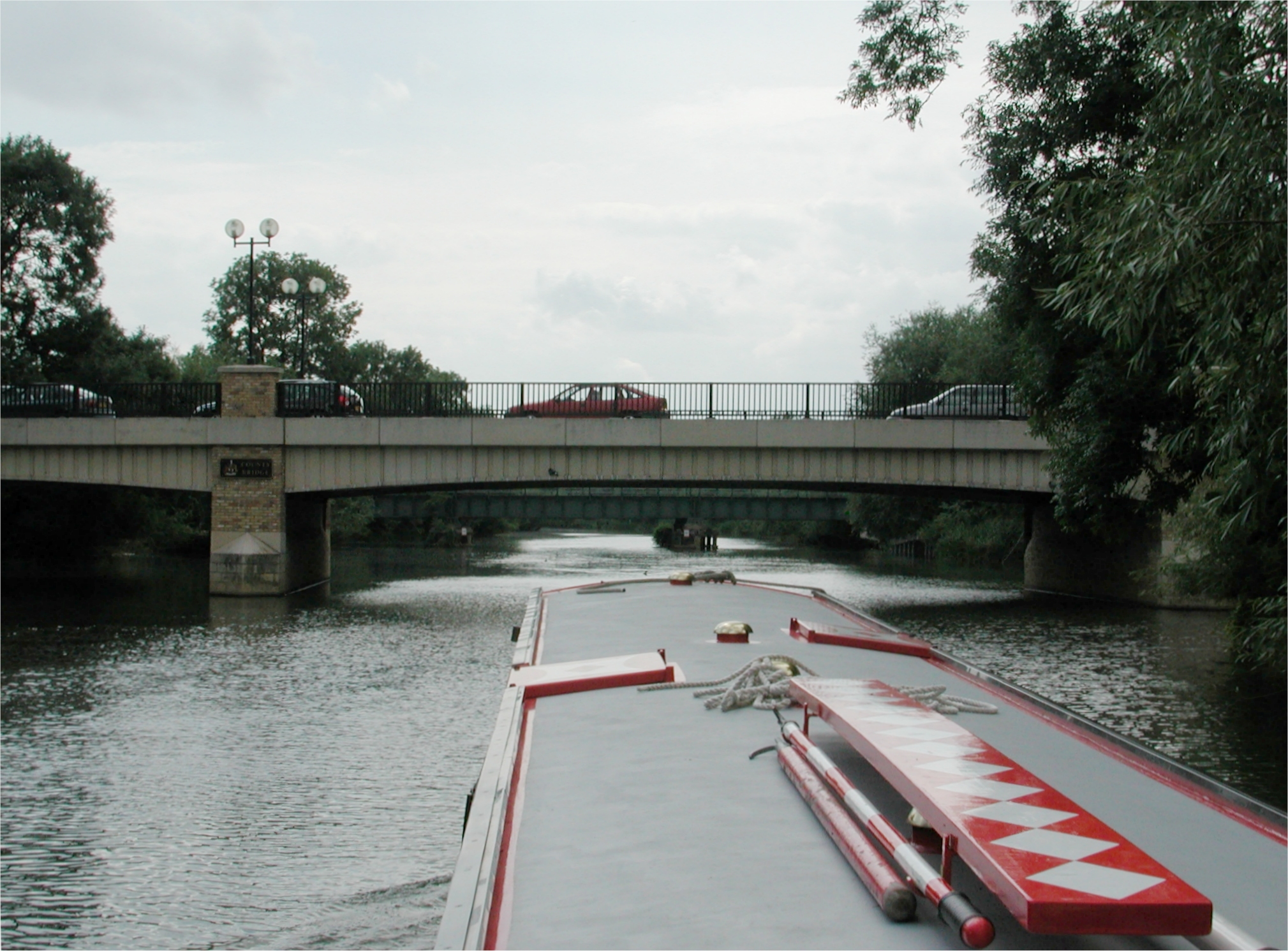 Lower River - we have just come out of Bedford Lock and the very low over bridge.