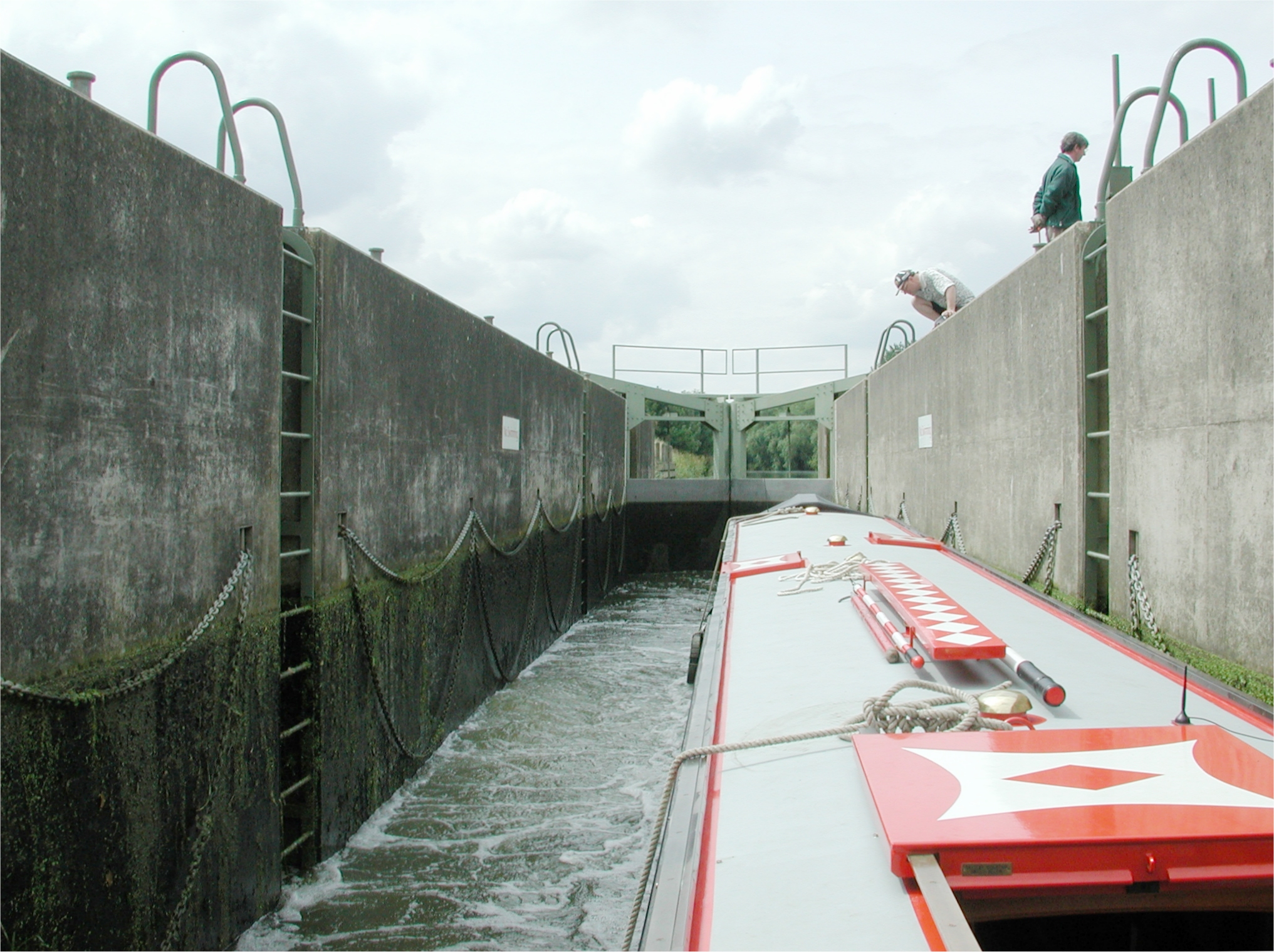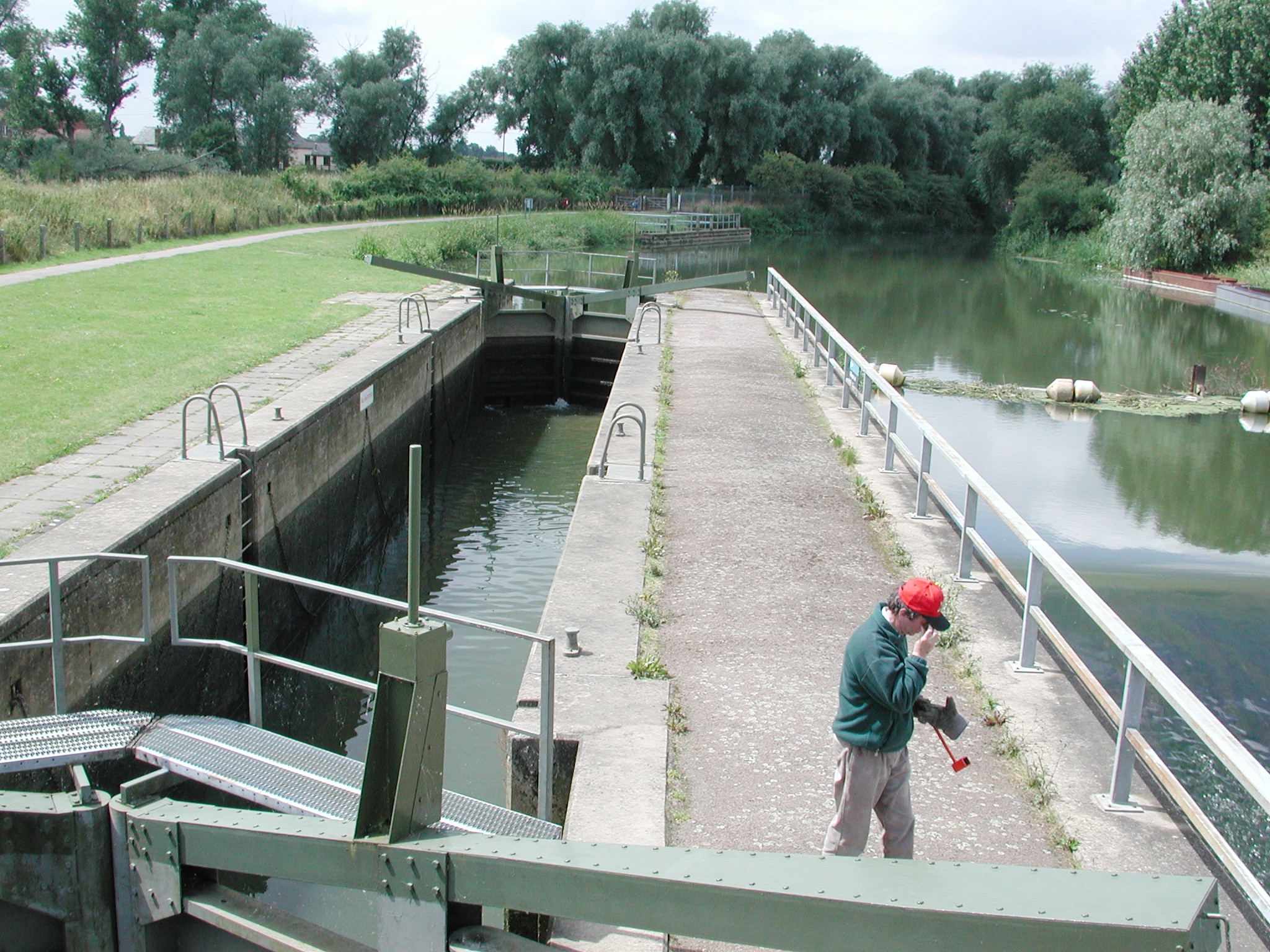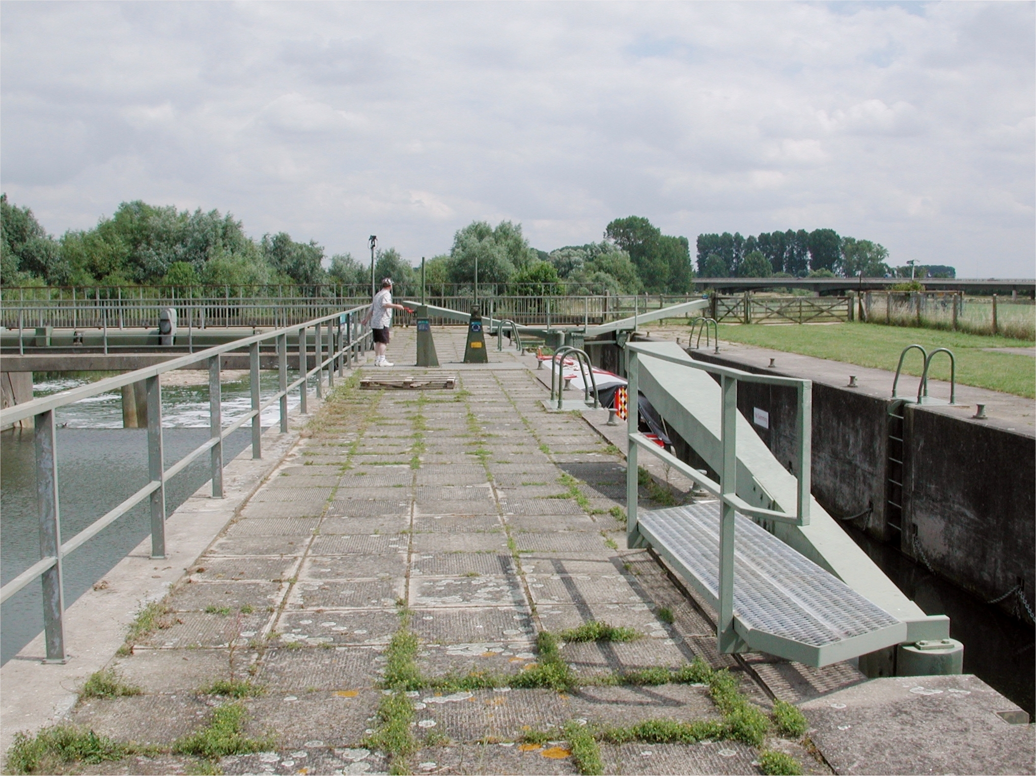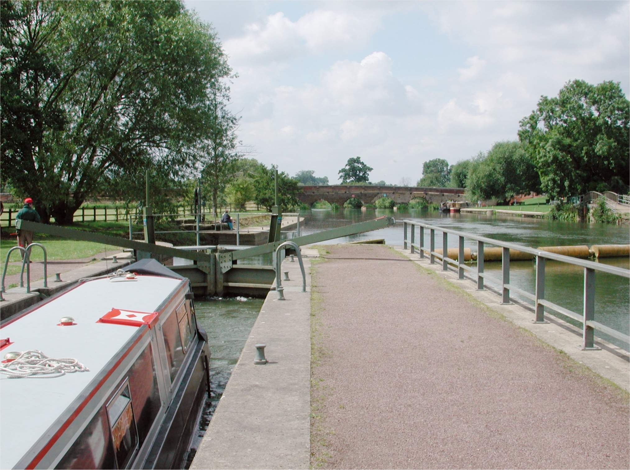 Lower River - we have just come out of Bedford Lock and the very low over bridge.