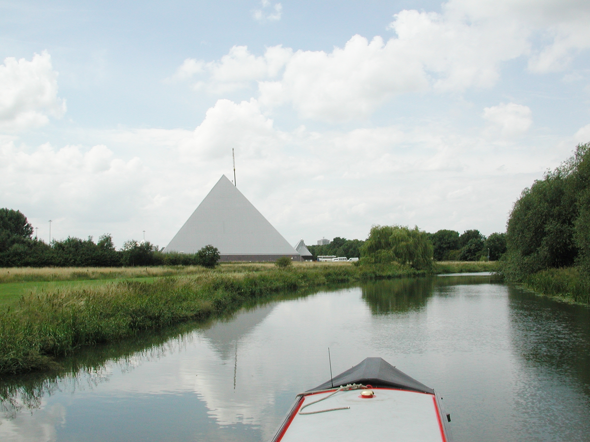 Approaches to Bedford. The Bedford pyramid. River Great Ouse.