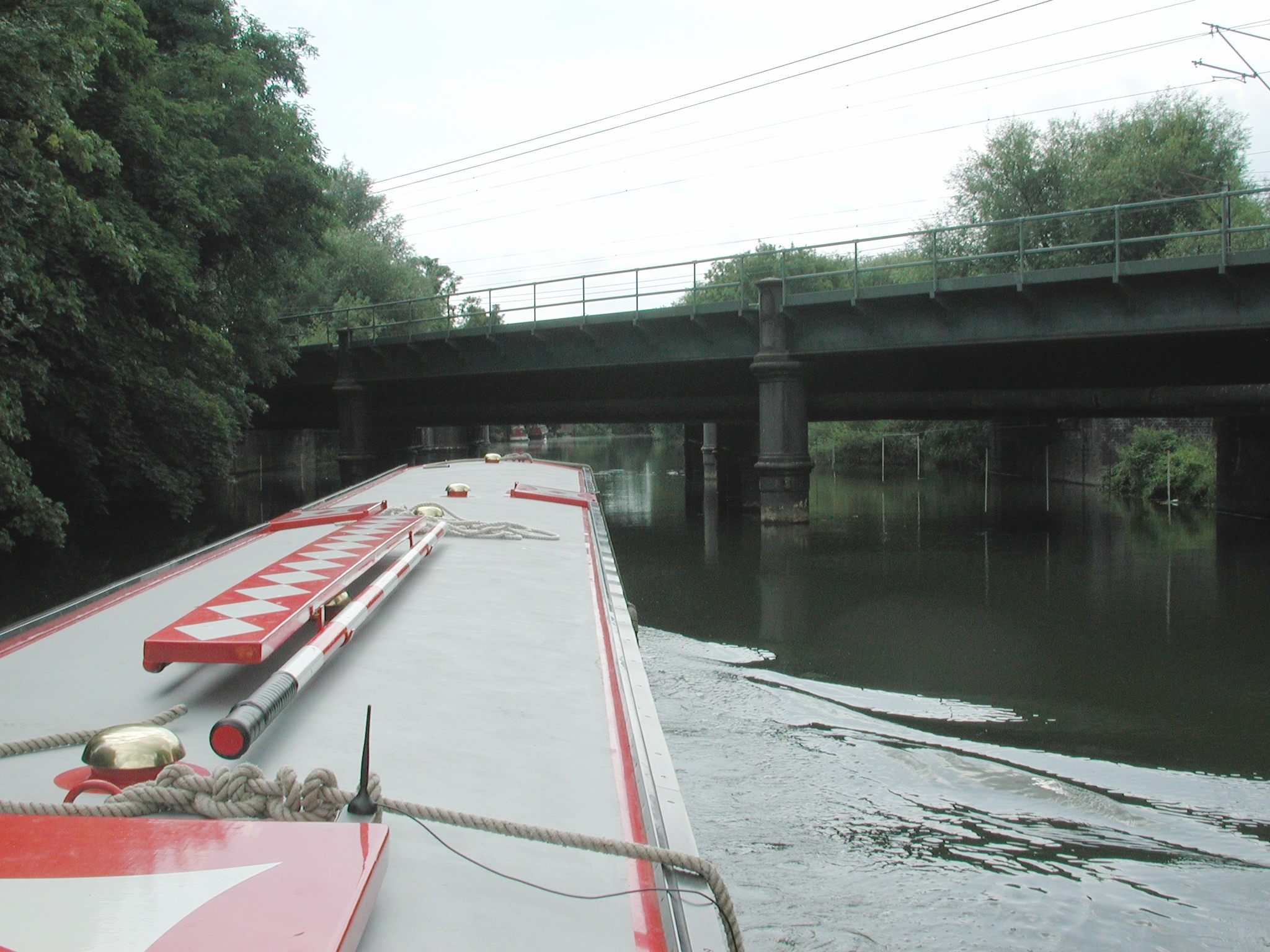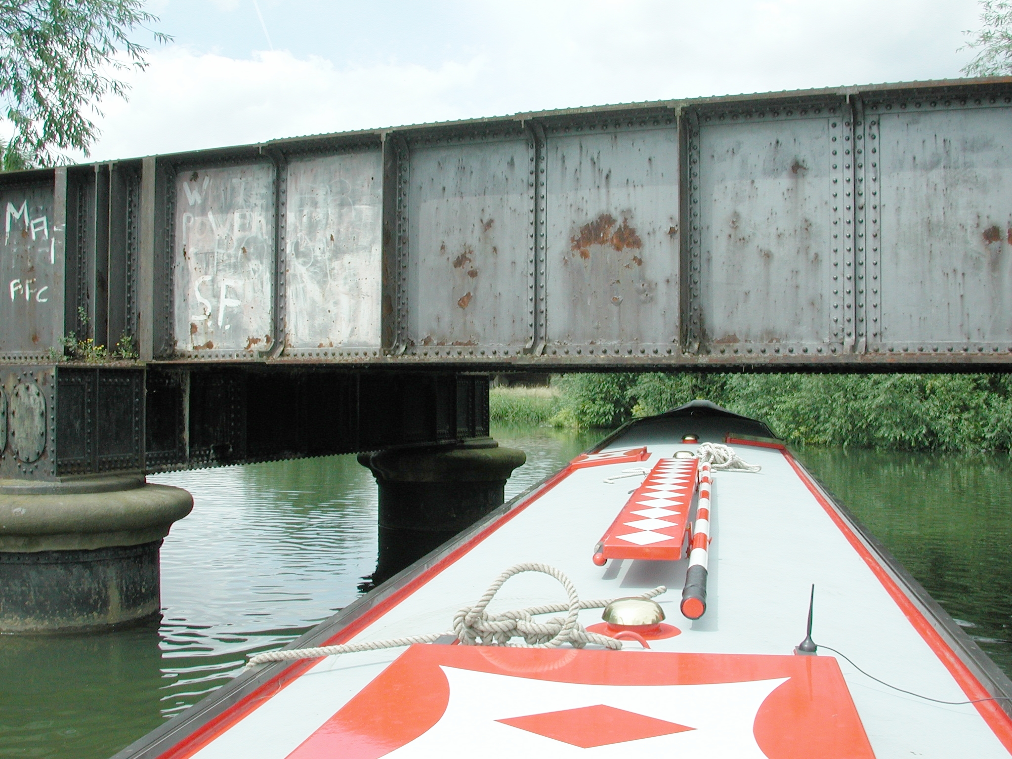 Looking up at the first low Rail Bridge. Bedford. River Great Ouse - up to