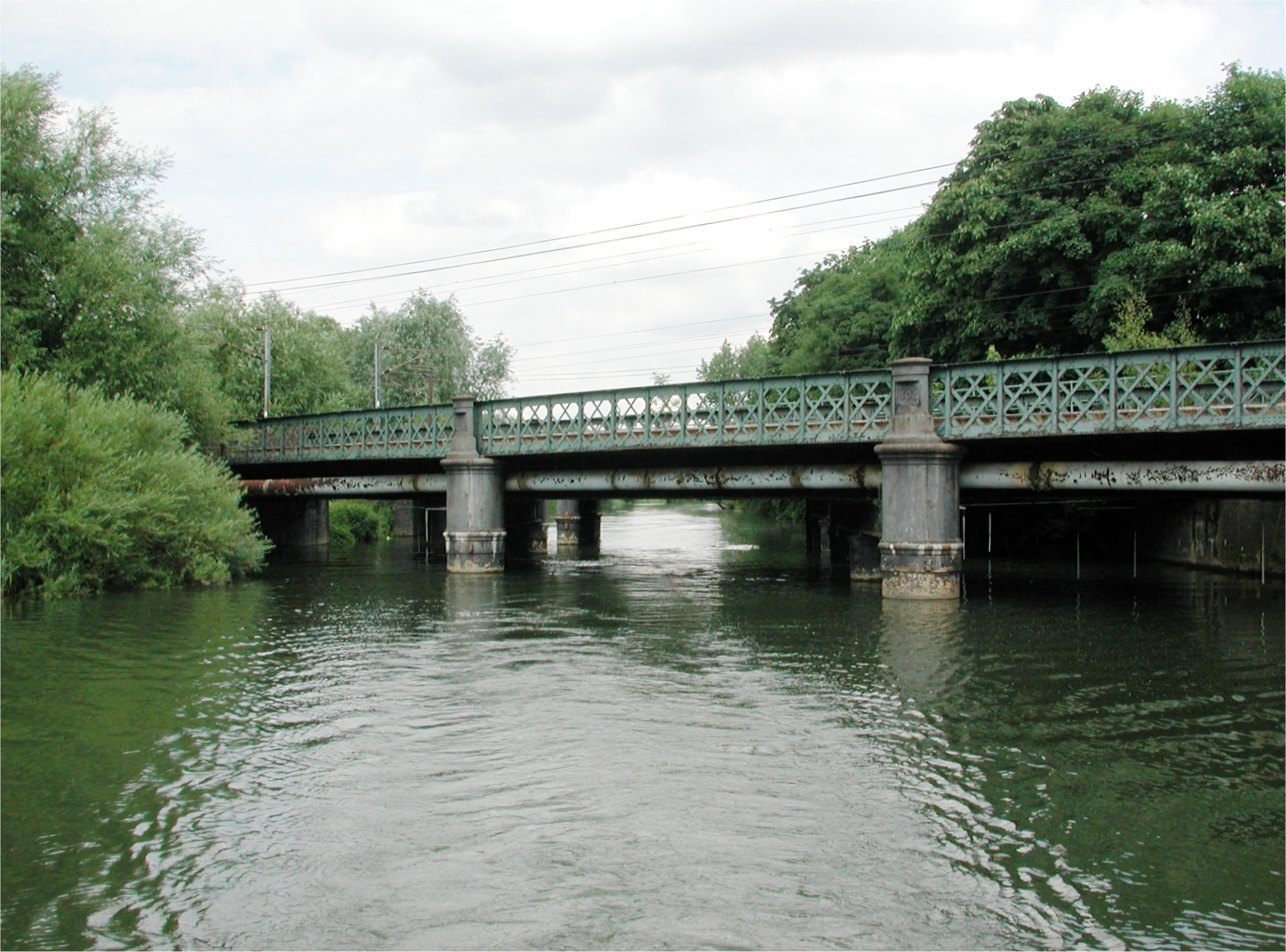 looking back at the second low Rail Bridge. Bedford. River Great Ouse - up
