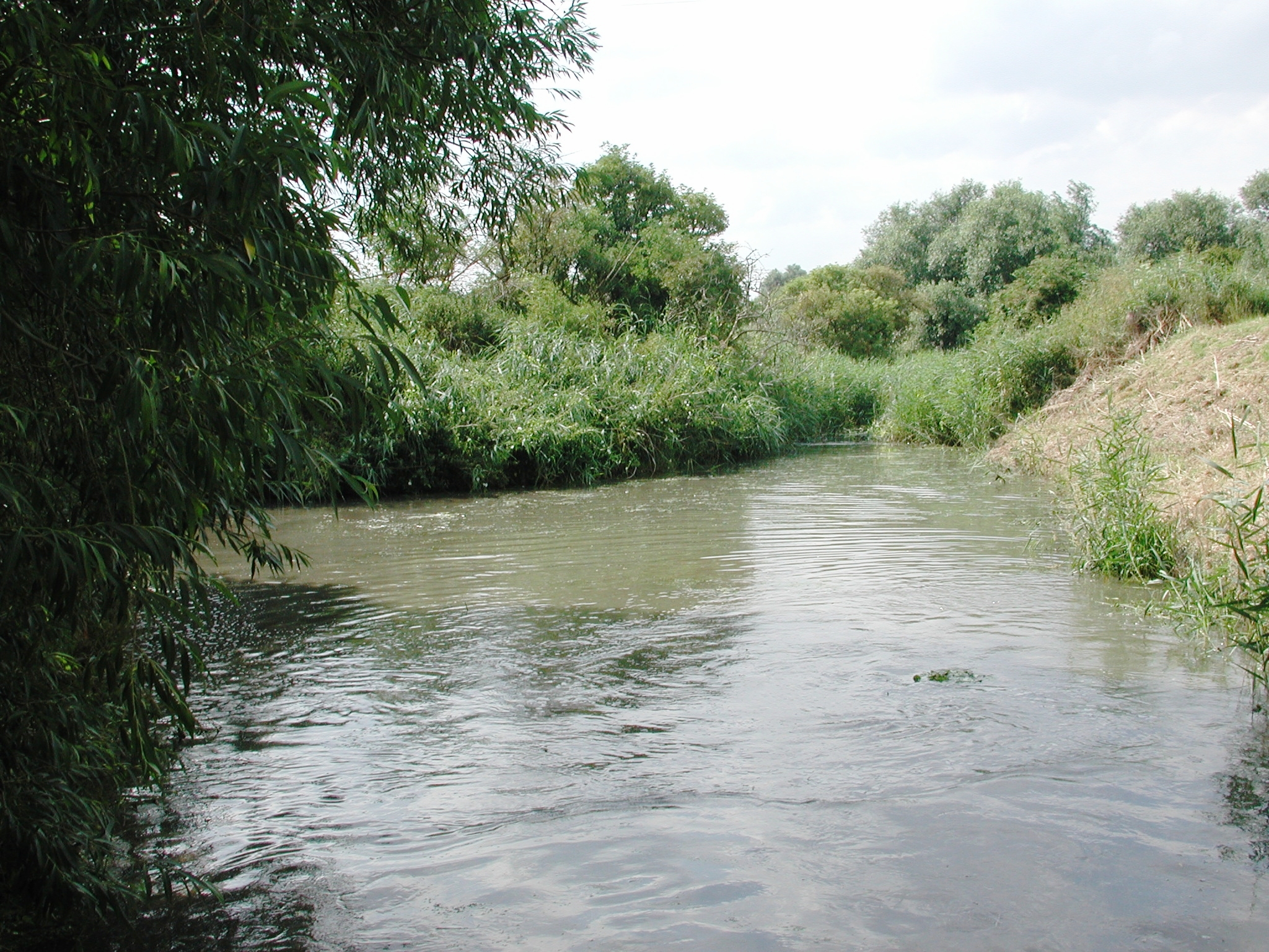 carry on up the right hand channel. This is as narrow / shallow / reed infested