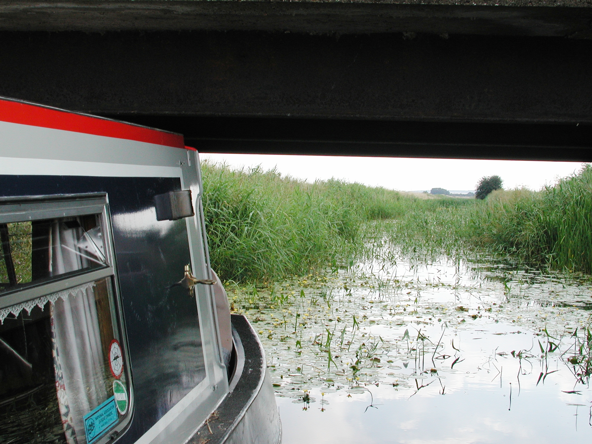 We got up to the bridge and it would have been possible to grind ourselves under it, but it was even weedier beyond. Imray