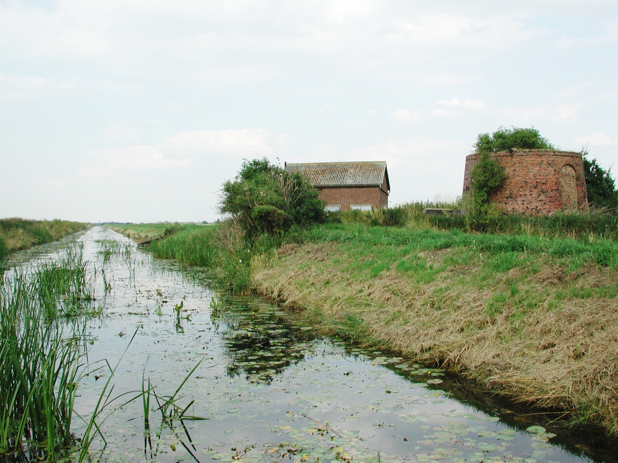 River Nene Old Course. Old Decoy Farm and pumping station. Middle Level.