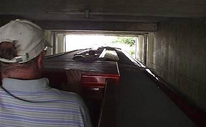 River Nene Old Course. Creeping under Exhibition Bridge - is that tight or