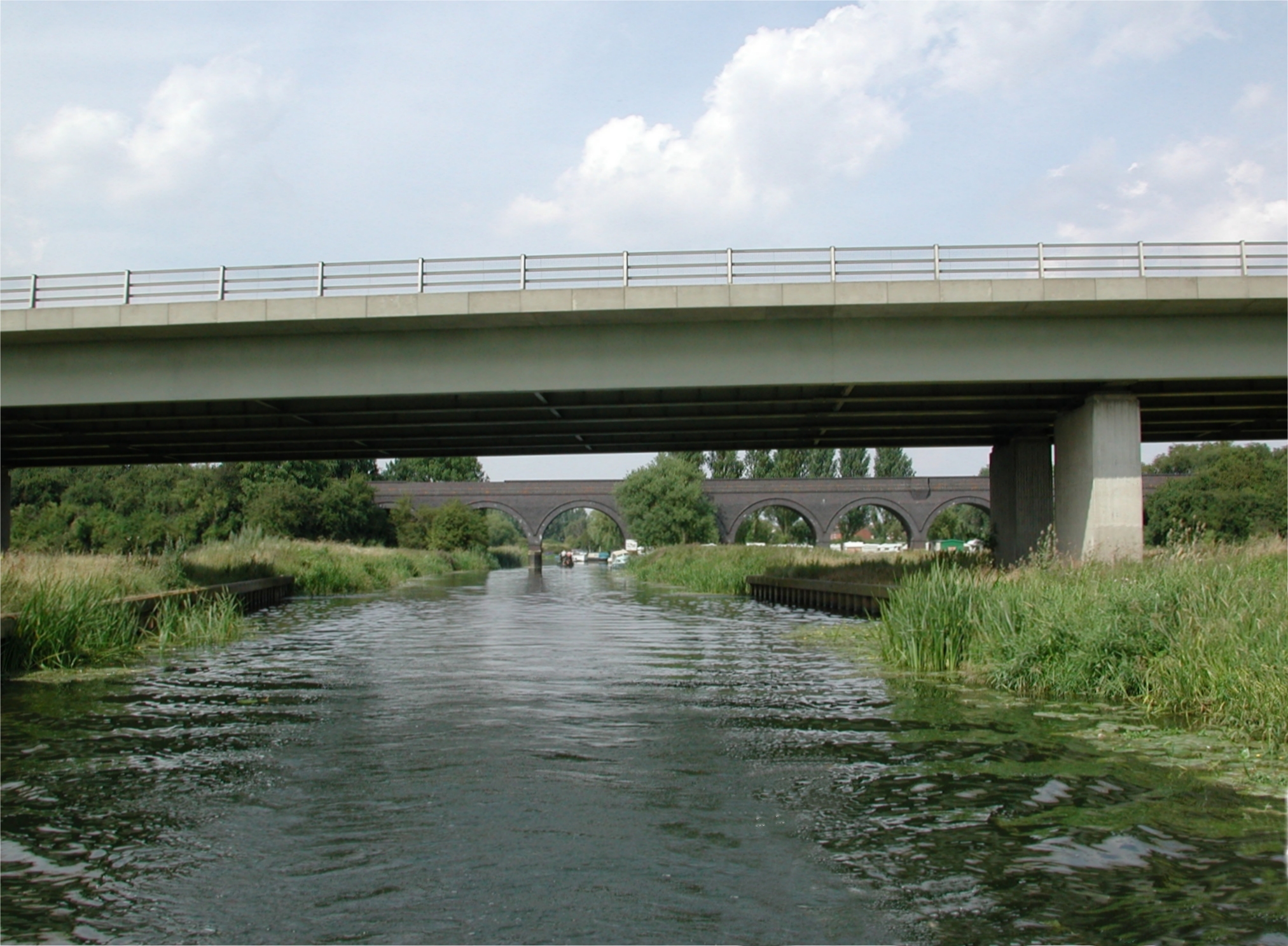 Thrapston. A14 Bridge and old railway viaduct. River Nene.