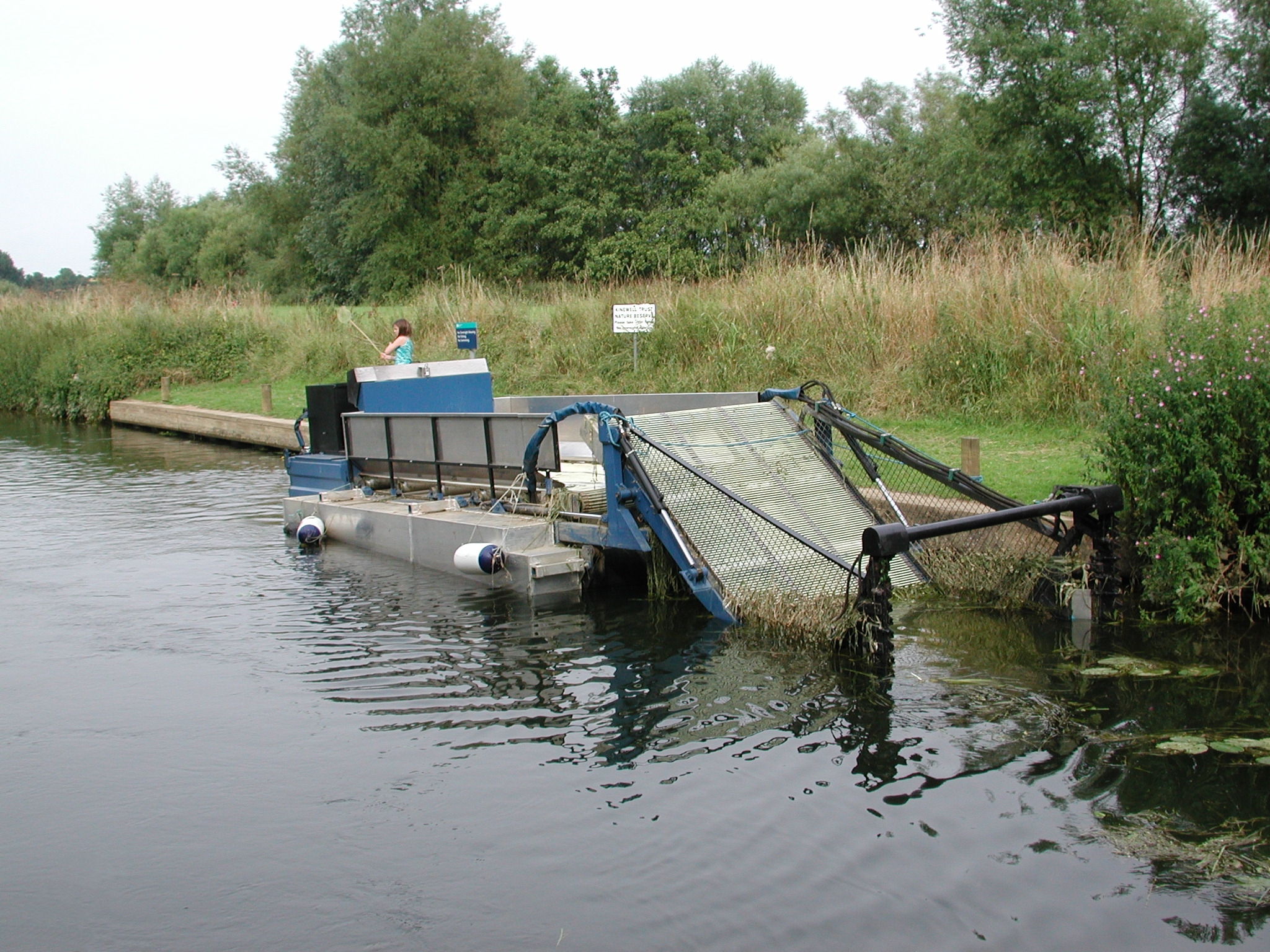 Lower Ringstead Lock - lower lock waiting stage and EA weedcutter. River