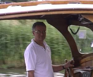 Ian Clarke at the helm of his beloved Straight Across. Upper River Thames.