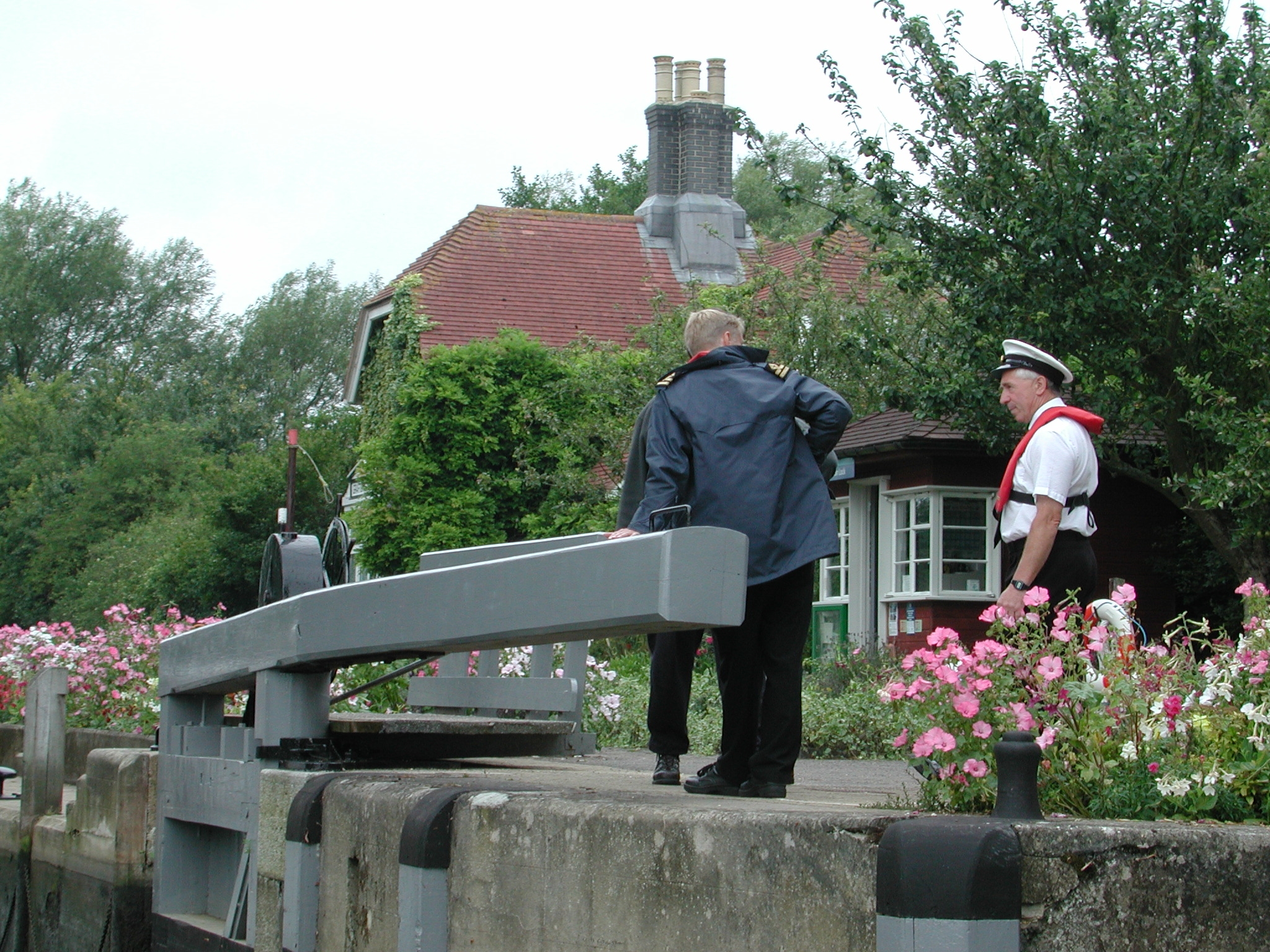 at Hurley) show EA inspectors how a lock works! Upper River Thames.
