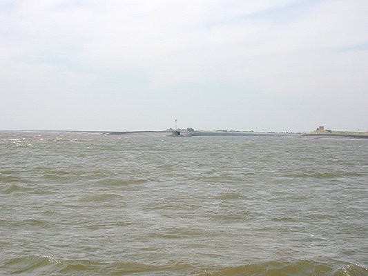 the sand, the cruiser, a sailing boat and Frogmoore pass and we creep out into