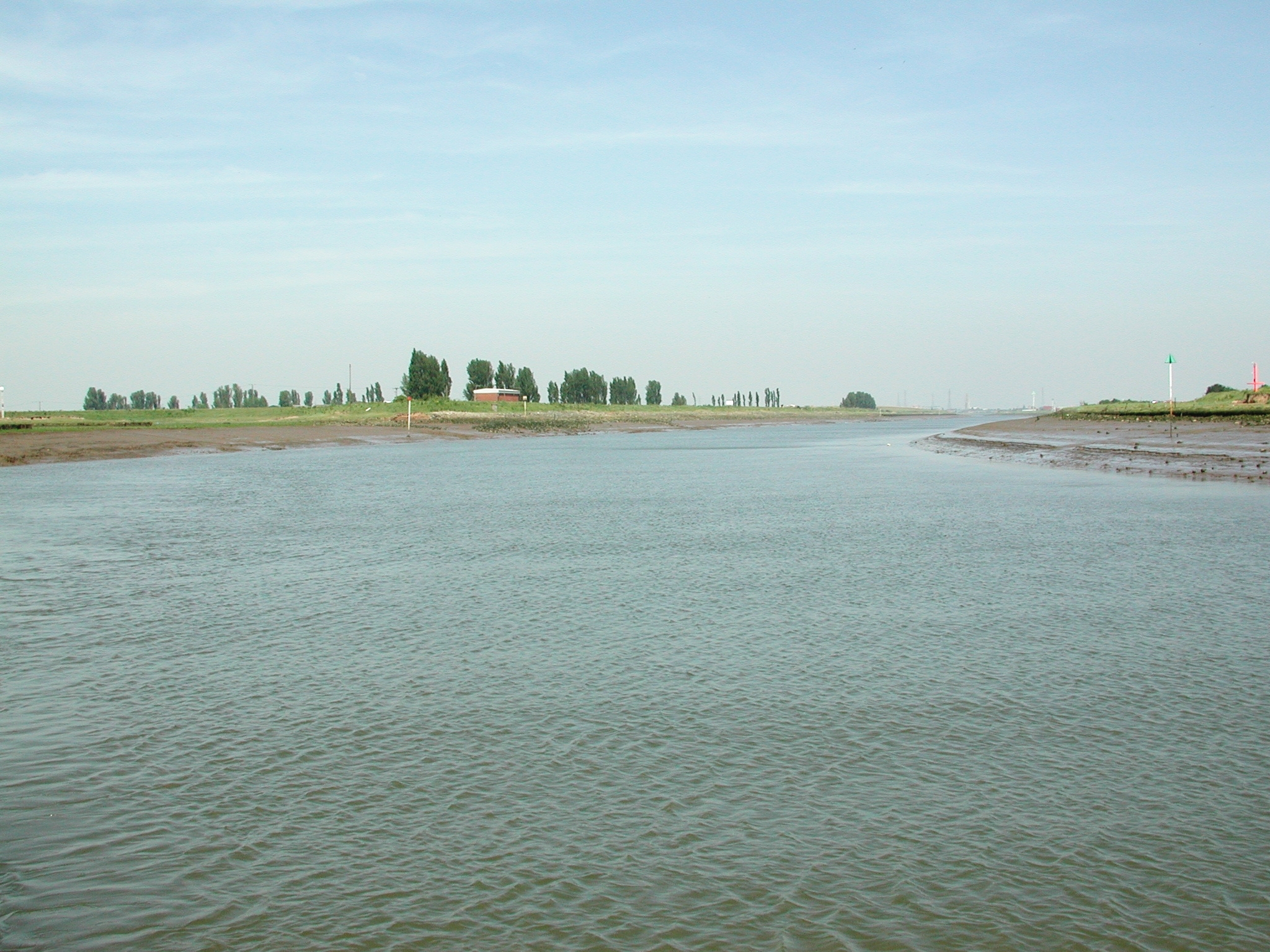 Tidal River Welland Outfall. Tabs Head Marker at entrance. Note the fleeing