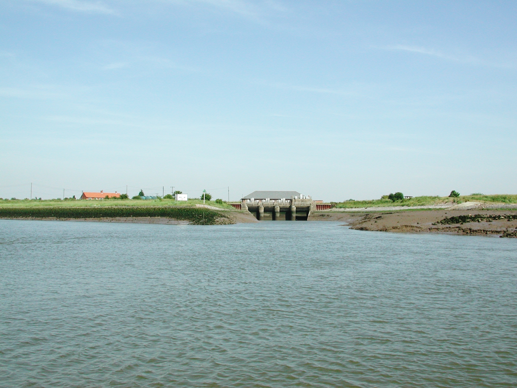 Tidal River Welland Outfall. Dolly Peg Marker at entrance.
