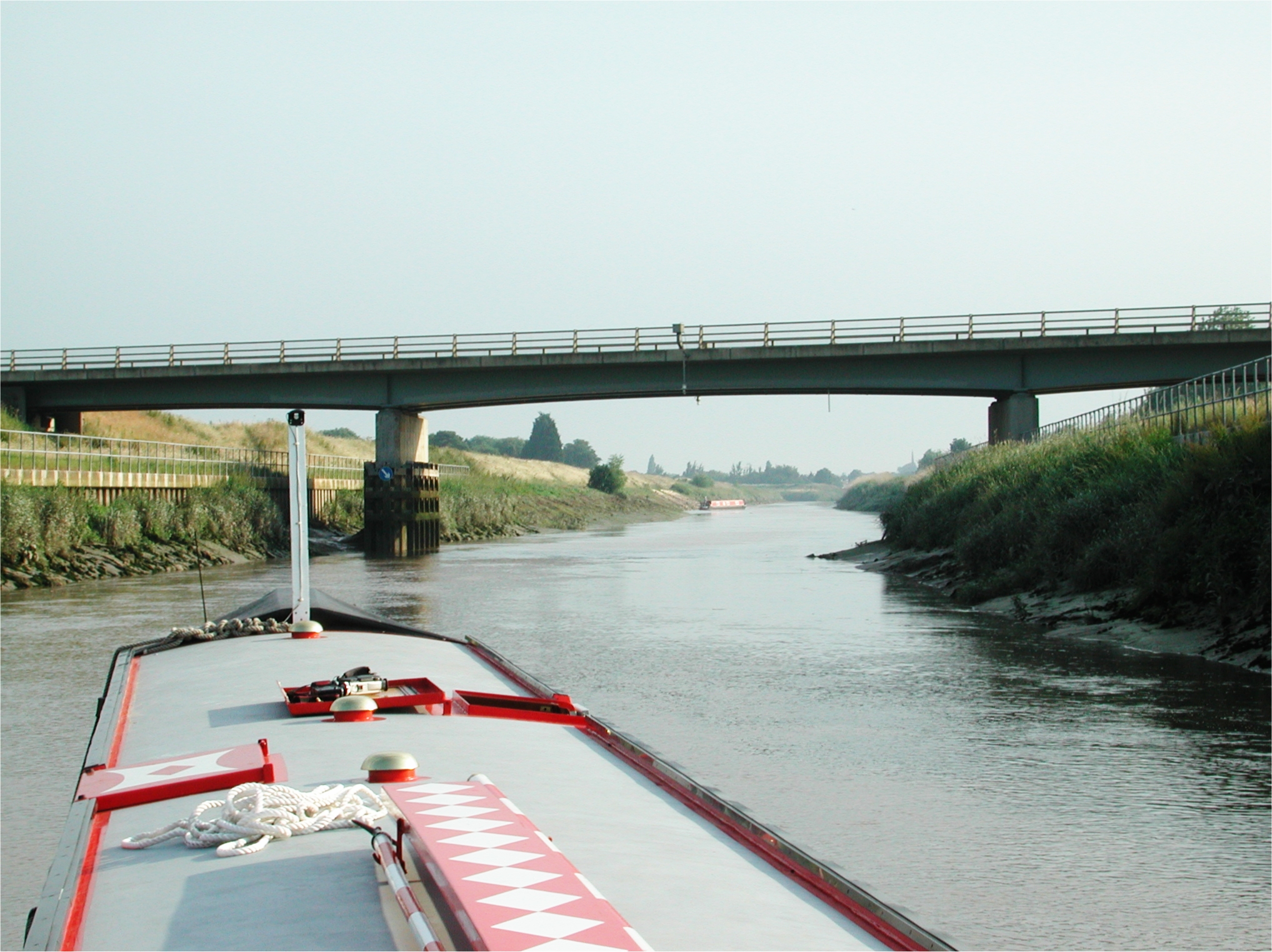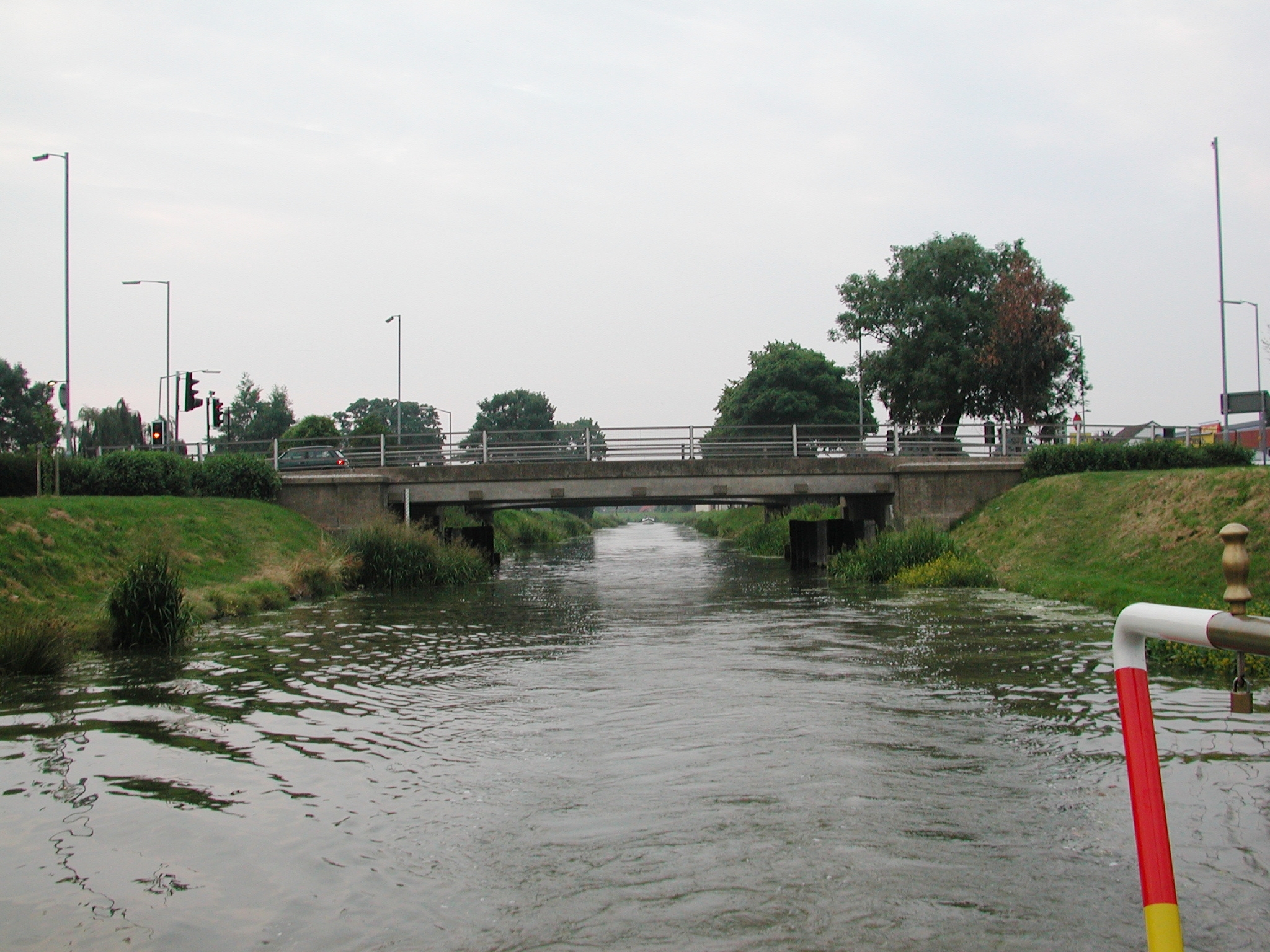 Approach to Spalding. Leaving West Elloe Bridge. River Welland.