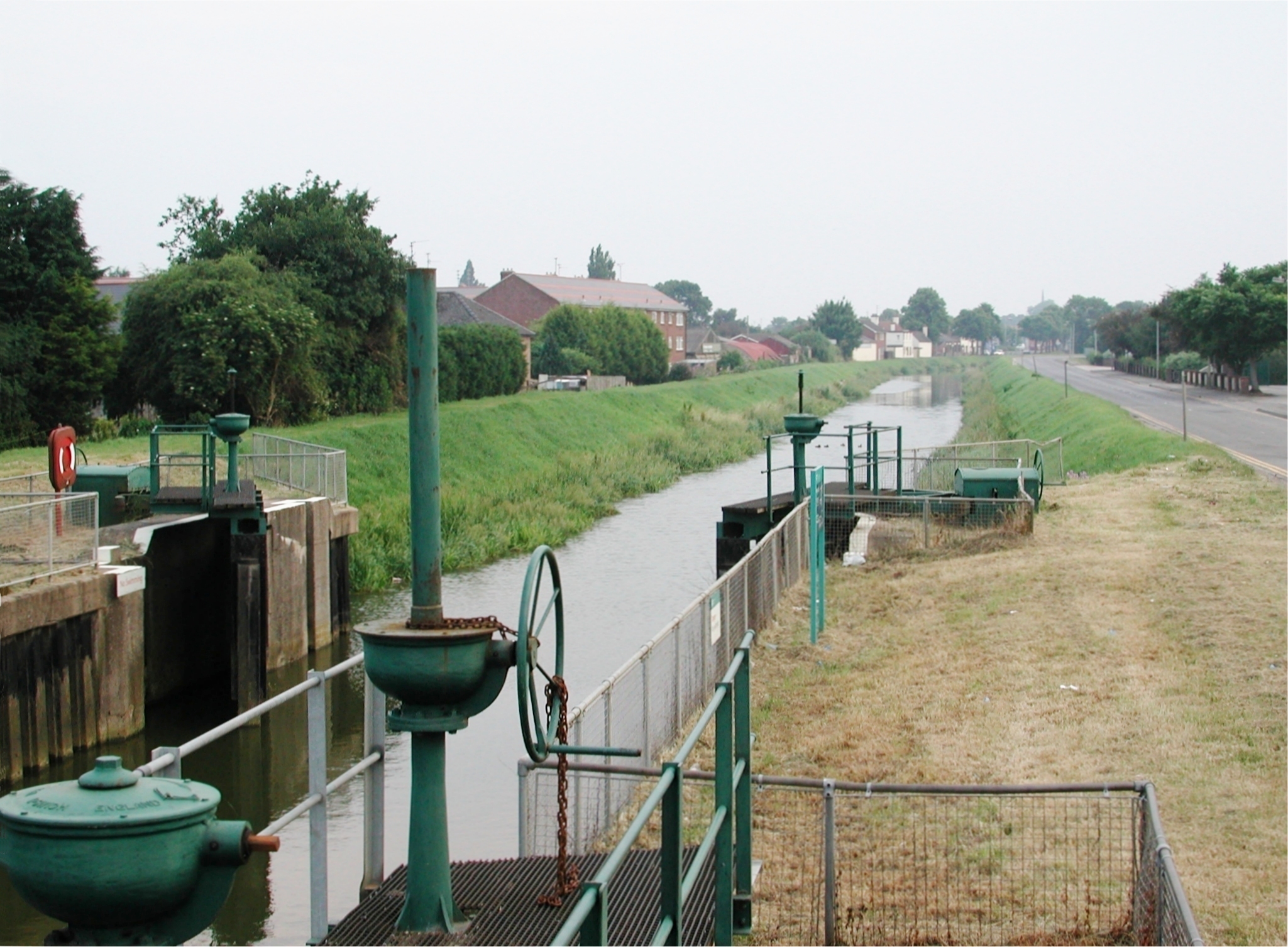 The Hobhole Drain Sluice. Tidal River Witham Outfall.