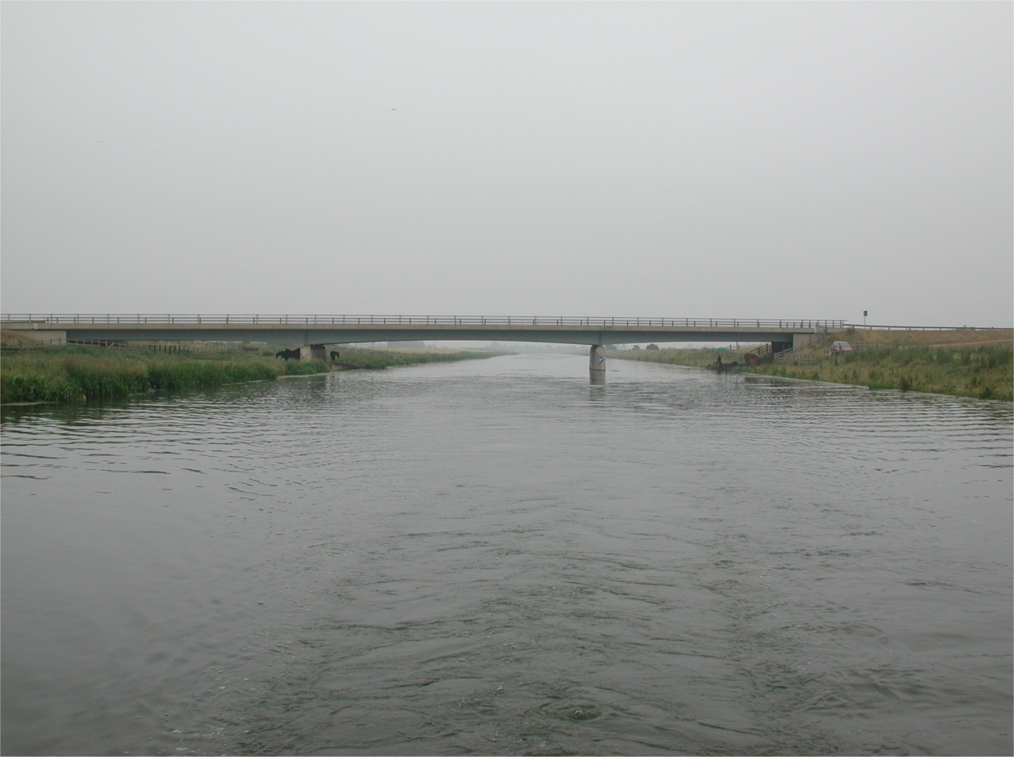 Misty start. A16 Bridge in the distance. River Welland.