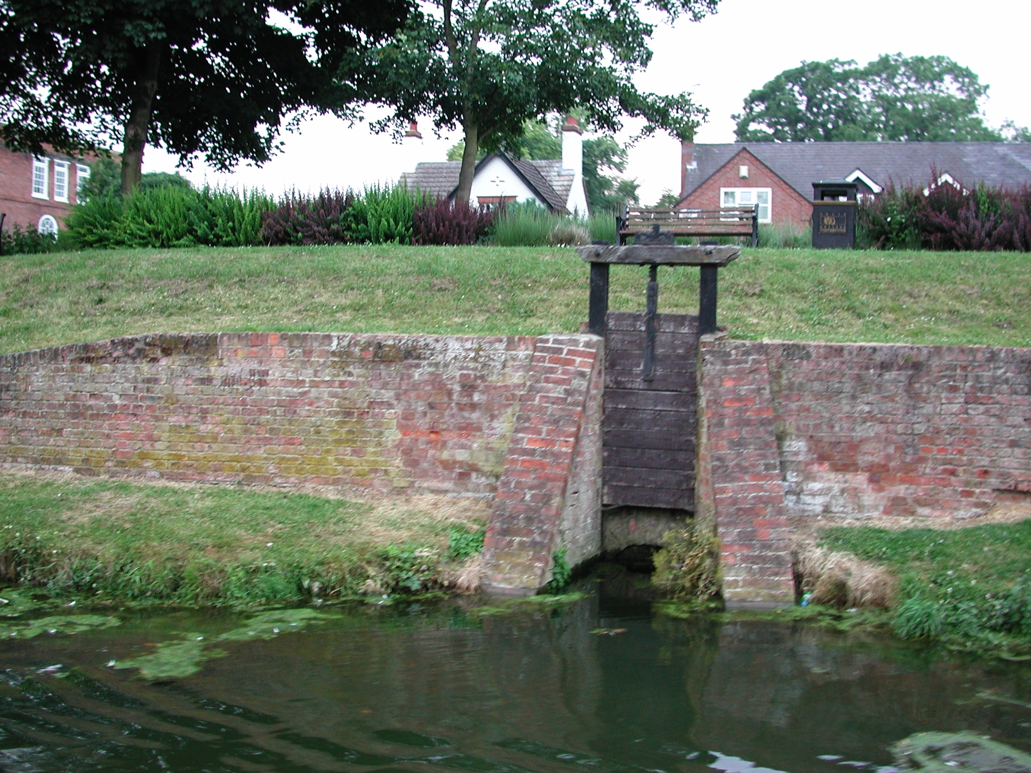 Earnest up to the low pointy doors. Car Dyke Peakirk Sluice. Car Dyke Sluice