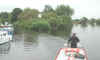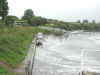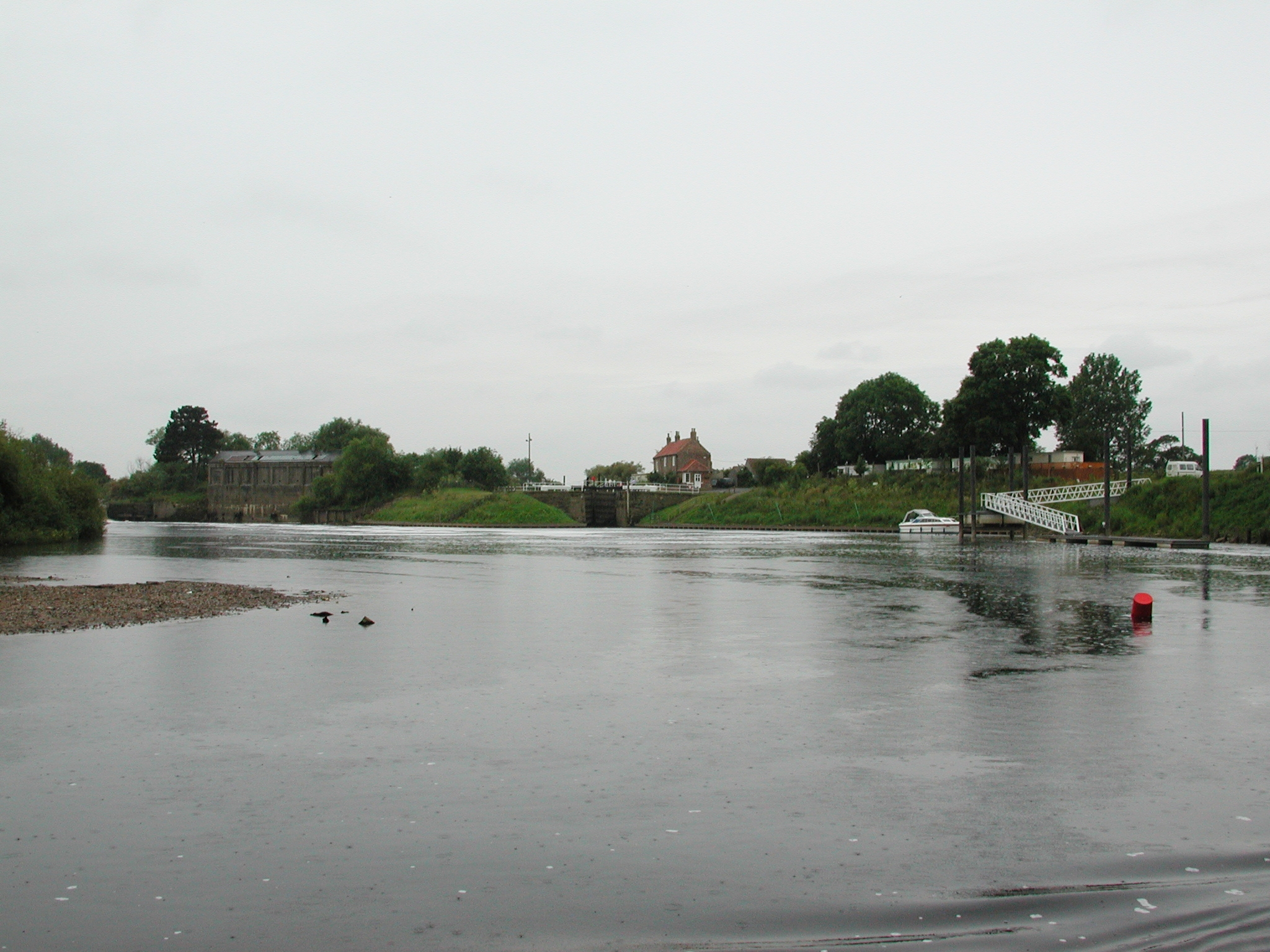 Leaving Milby Lock cut, Boroughbridge weir to the right. River Ure.