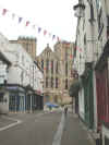 Looking up at the new by-pass bridge, built on the line of the old railway.