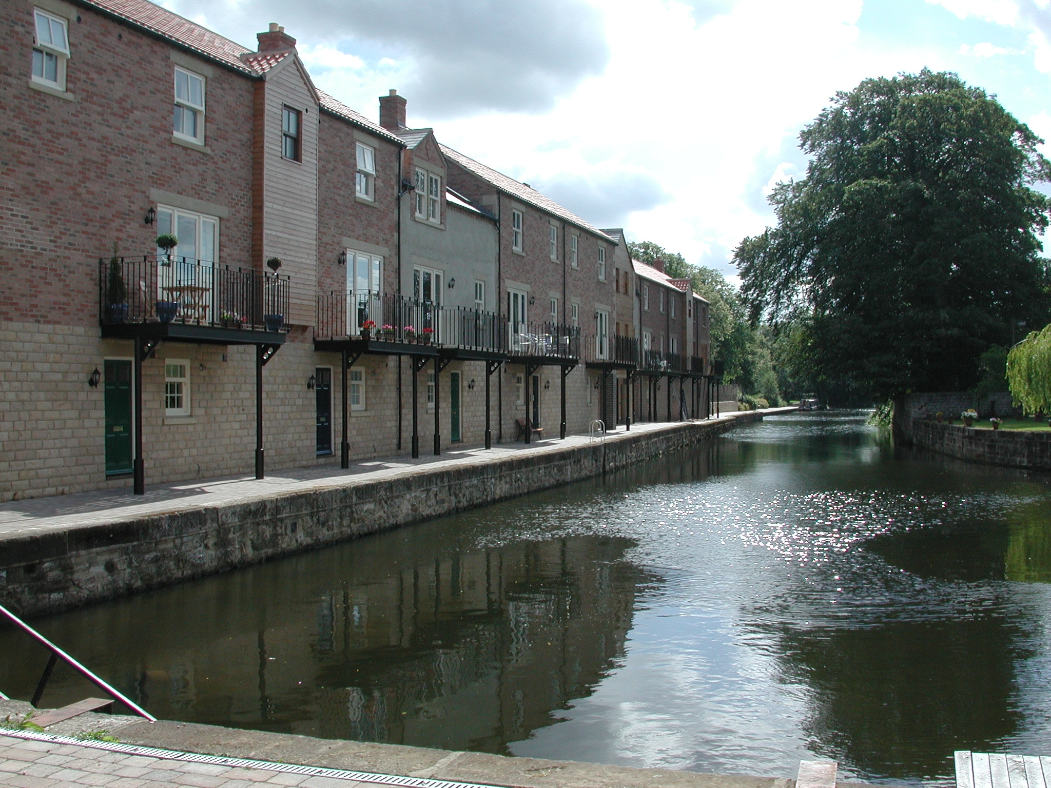 Ripon Basin. Restored wharf building still waits for a use. Ripon Canal.