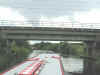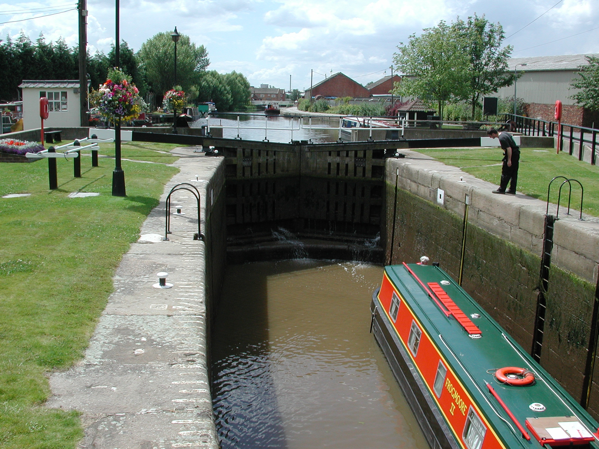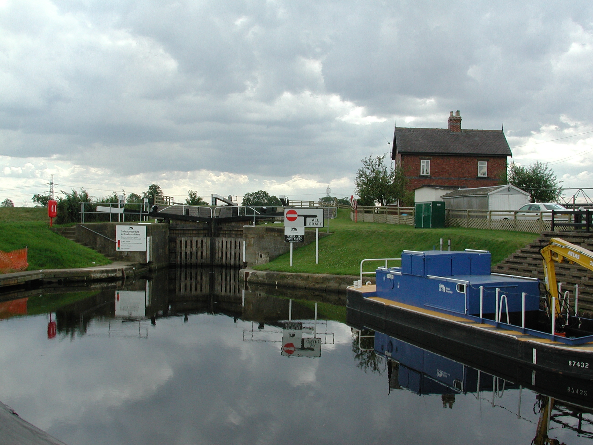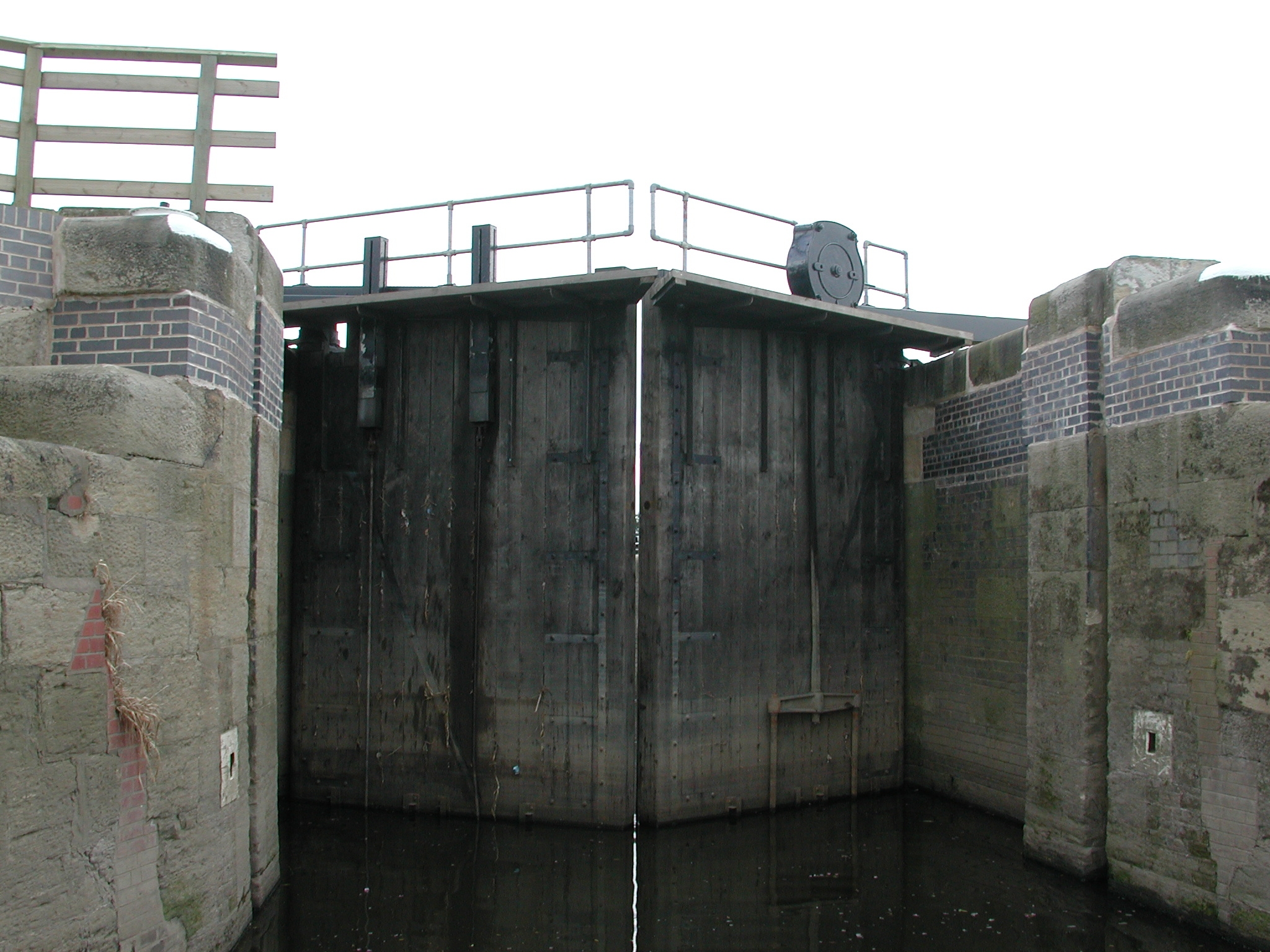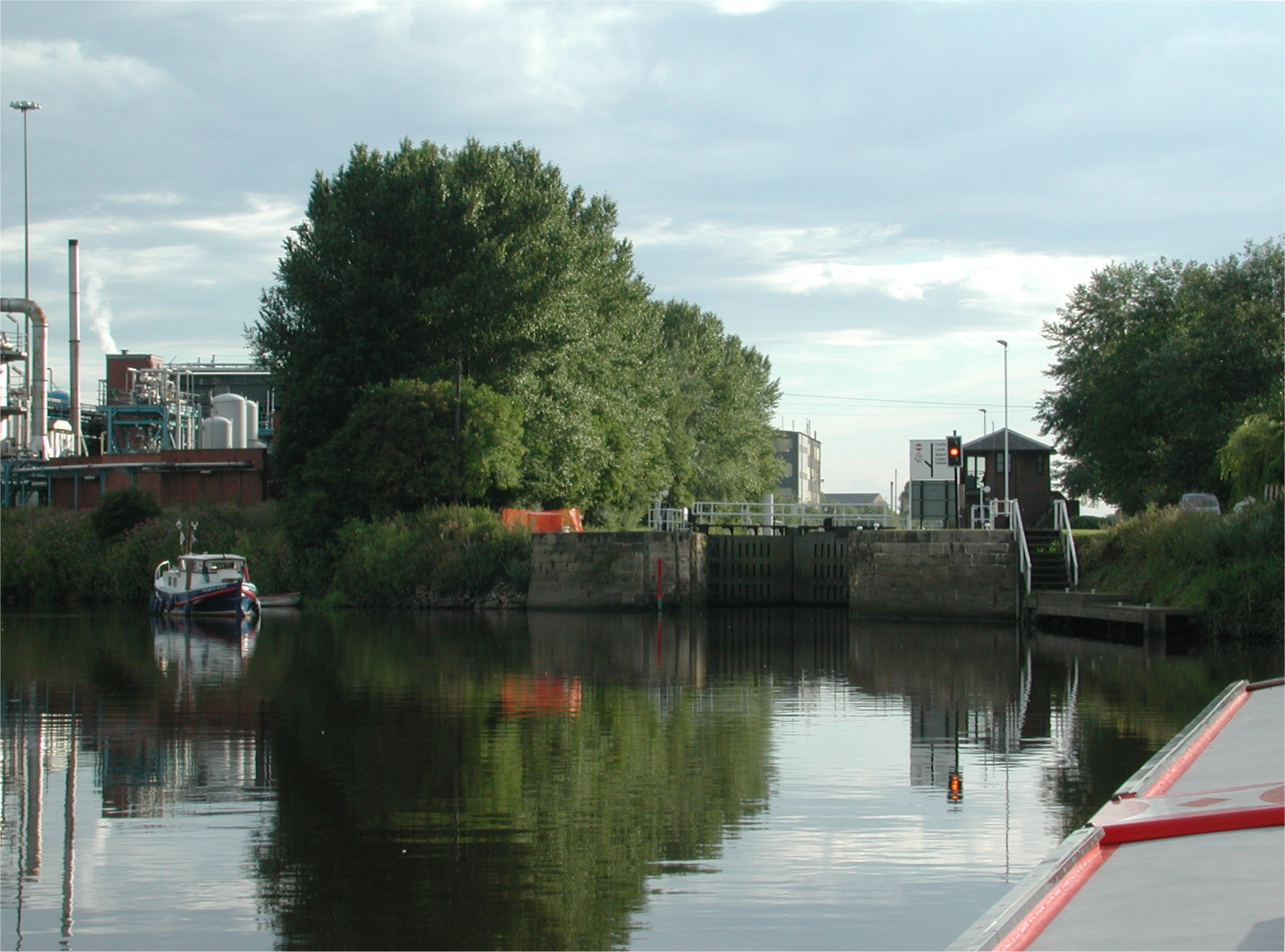 Straight through Ferrybridge Flood Lock. Aire and Calder Navigation.